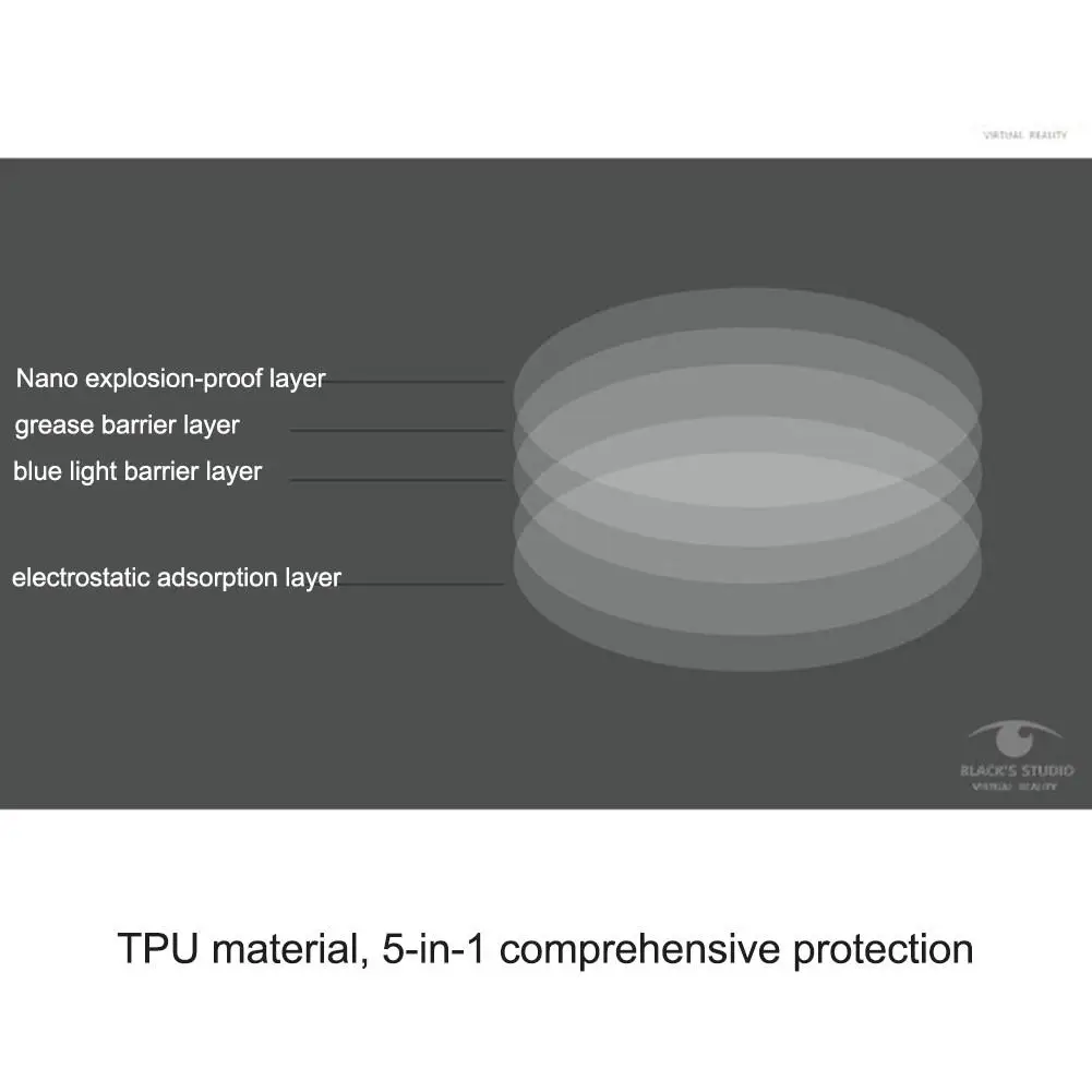 1. ТПУ анти-синий материал света; поставляется с эффективной буферной силой; обеспечивает лучшую защиту для экрана.1 * тканевая салфетка для очистки стекла