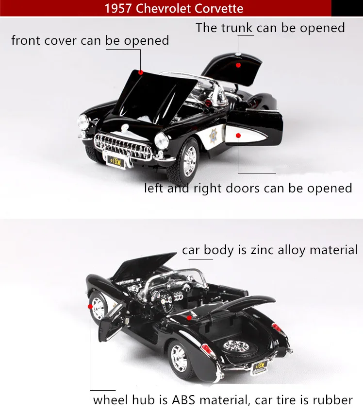 [Название модели]1957 Chevrolet Corvette[Бренд модели]Maisto[Материал модели] цинковый сплав/ABS/Резина[Соотношение модели автомобиля]1:18[Цвет модели]Белый/матовый серый[Стандарт упаковки] картонная прозрачная упаковка, модель с базовым дисплеем[Метод обслуживания] при очистке вы можете заполнить немного спирта и протереть его сухой тканью. Не протирайте водой.[Функция модели автомобиля] две двери могут быть открыты + капот может быть открыт + Рулевое колесо и переднее колесо не связаны