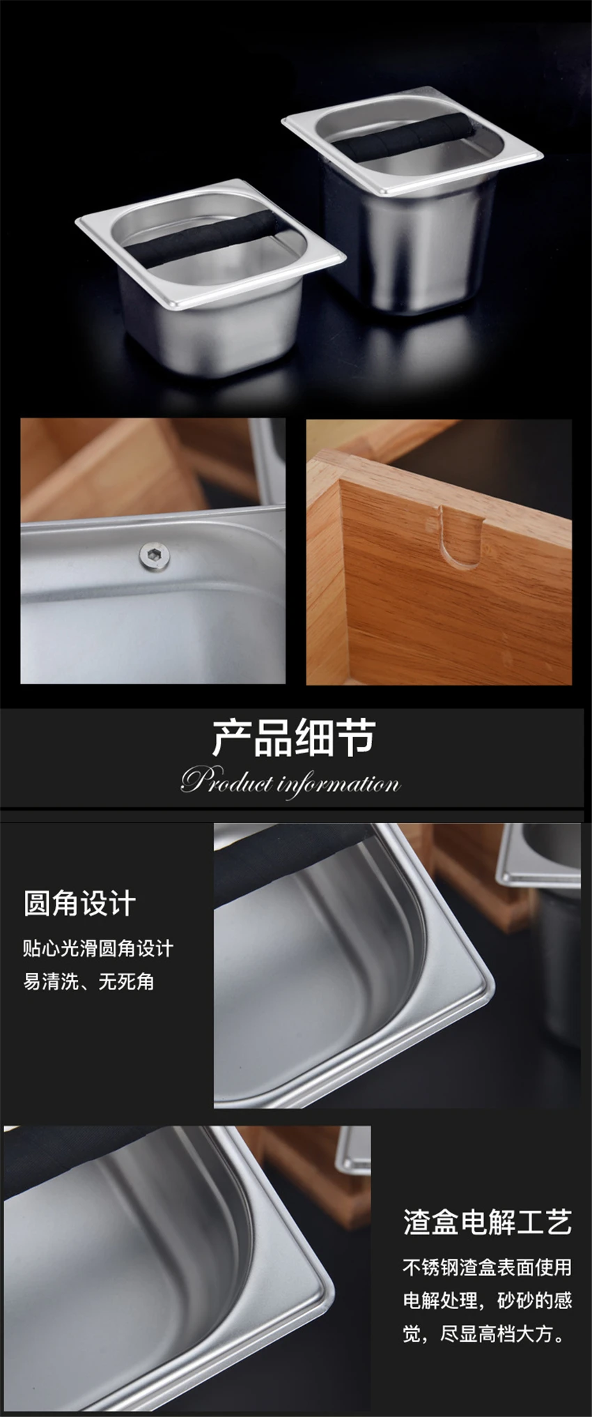 Деревянная коробка для кофе из нержавеющей стали с глубоким изгибом дизайн кофе шлак не всплеск руководство кофемолка аксессуары для кафе