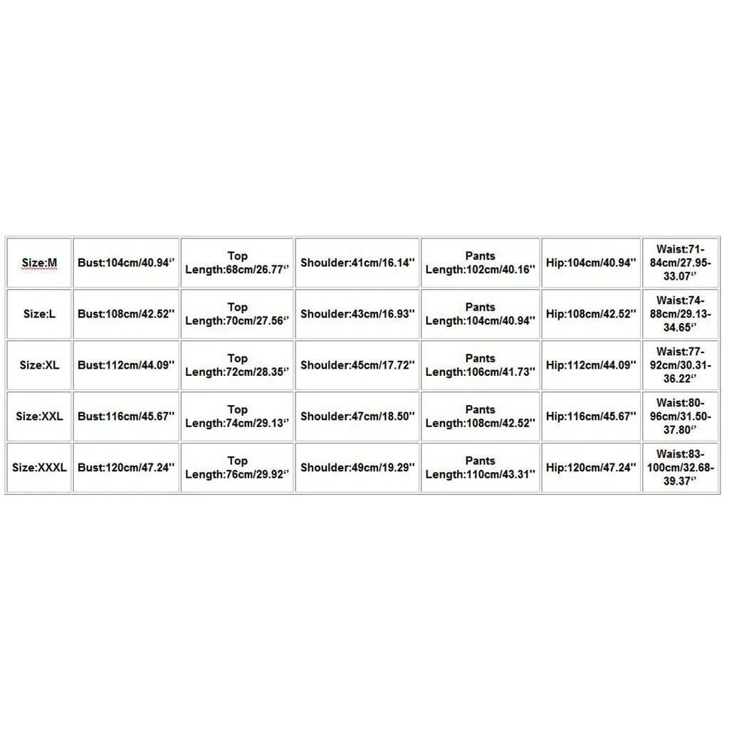 Размеры Обхват груди Топ Длина Сумка на плечо Брюки Длина Обхват бедер Обхват талии М 104 см/40,94'' 68 см/26,77'' 41 см/16,14'' 102 см/40,16'' 104 см/40,94'' 71-84 см/27,95-33,07'' L 108 см/42,52'' 70 см/27,56'' 43 см для ухода за ребенком для мам/16,93'' 104 см/40,94'' 108 см/42,52'' 74-88 см/29,13-34,65'' XL 112 см/44,09'' 72 см/28,35'' 45 см/17,72'' 106 см/41,73'' 112 см/44,09'' 77-92 см/30,31-36,22'' XXL 116 см/45,67'' 74 см/29,13'' 47 см/18,50'' 108 см/42,52'' 116 см/45,67'' На рост от 80 до 96 см/31,50-37,80'' XХХL 120 см/47,24'' 76 см/29,92'' 49 см/19,29'' 110 см/43,31'' 120 см/47,24'' 83-100 см/32,68-39,37''
