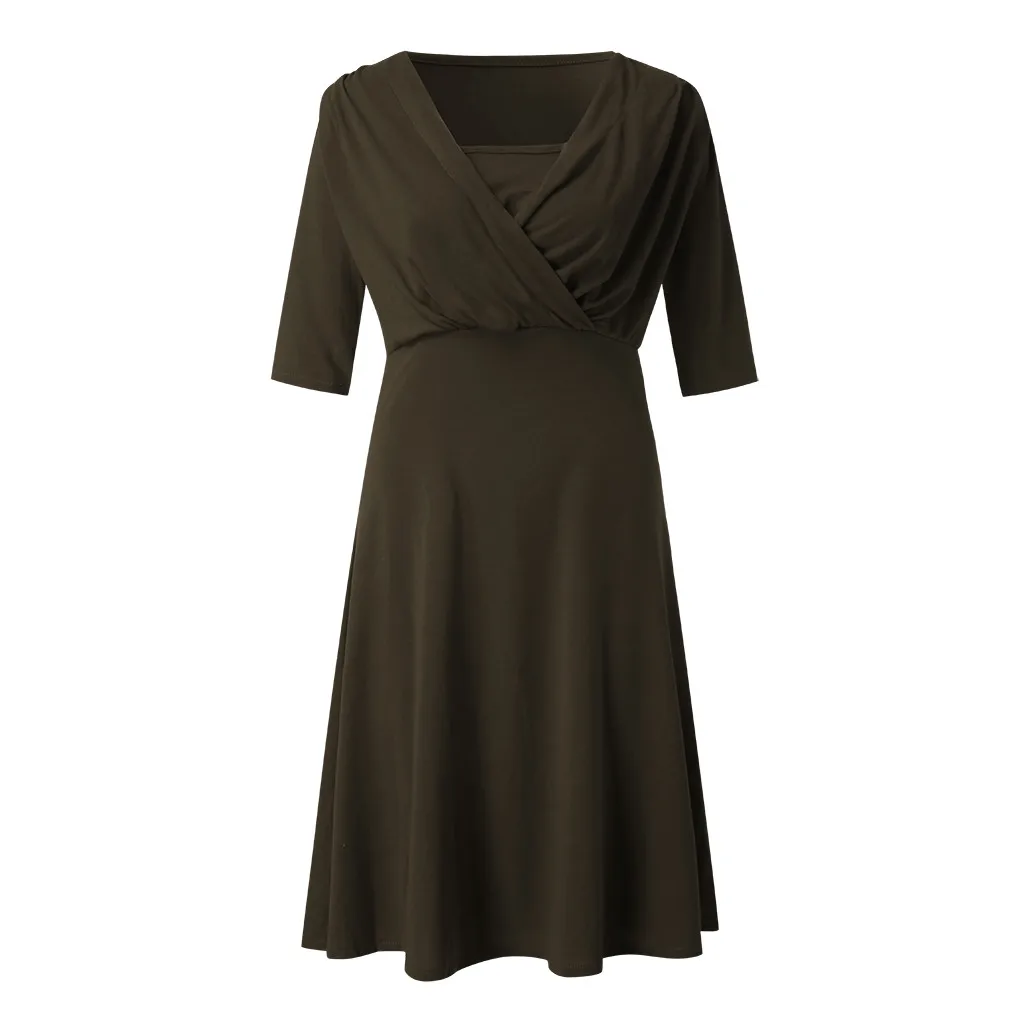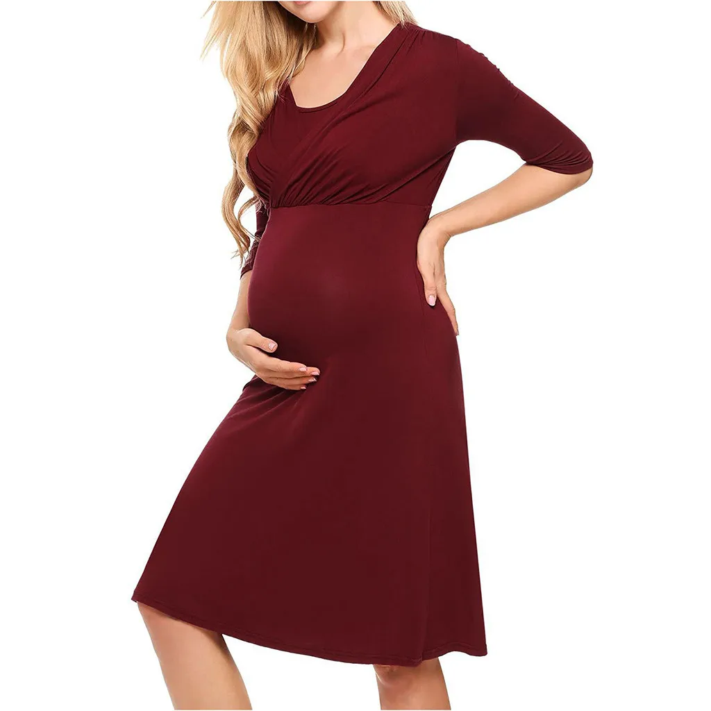 Женское платье для кормящих матерей, семь четвертей, с v-образным вырезом, для грудного вскармливания, для беременных женщин, короткий рукав, платья для грудного вскармливания