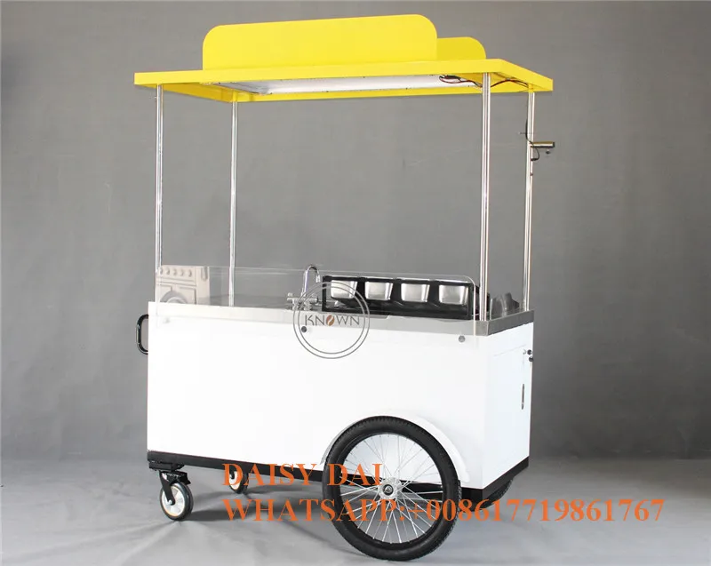 Мобильная уличная хот-дог еда торговый корзина велосипед с морозильной камерой раковина солнечная панель гриль светильник