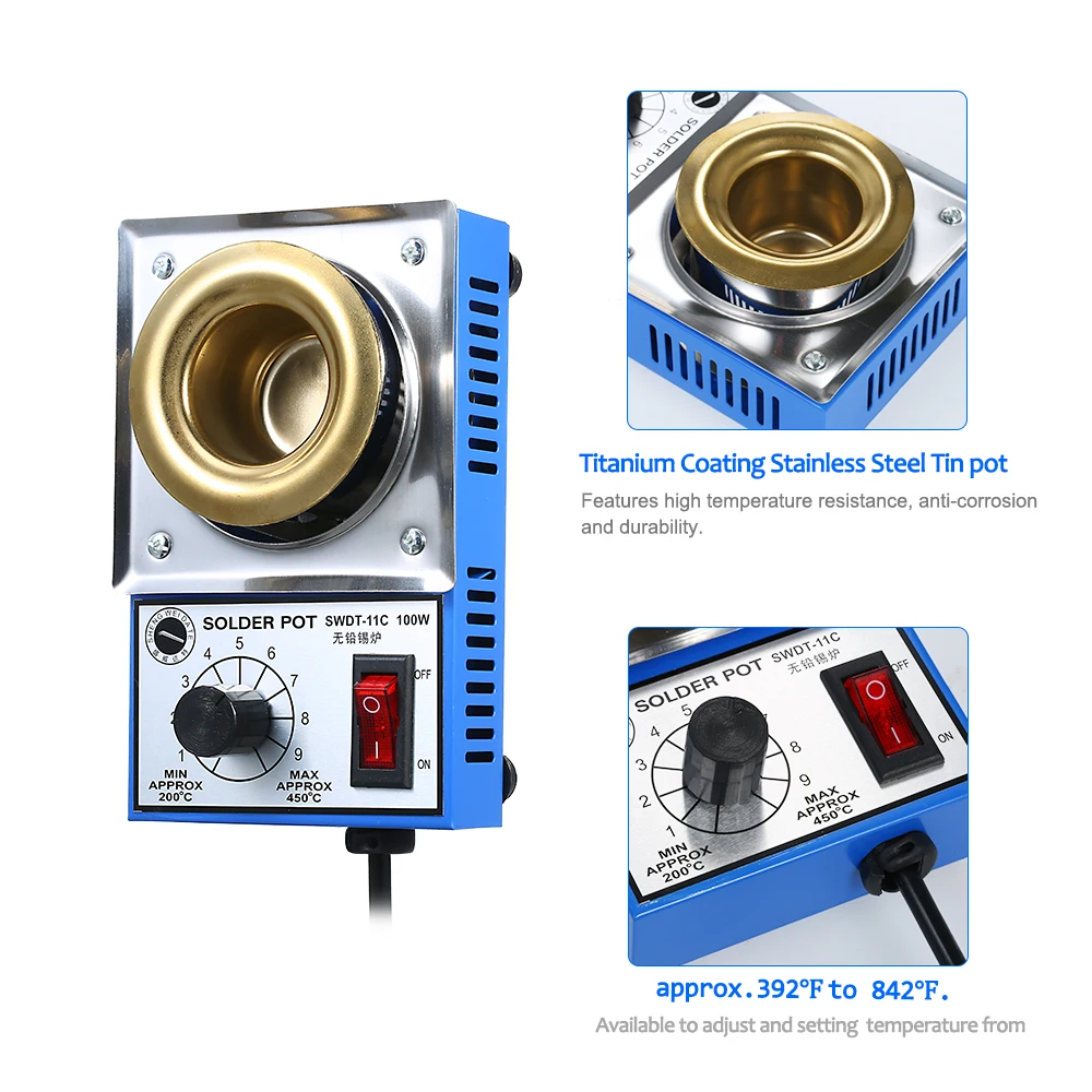 Доступно для регулировки и настройки температуры от прибл. 200 ℃ до 450 ℃(392 ℉ до 842 ℃).