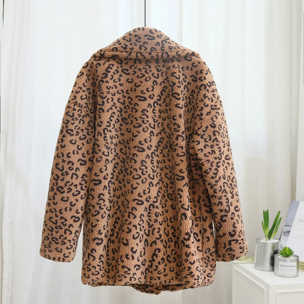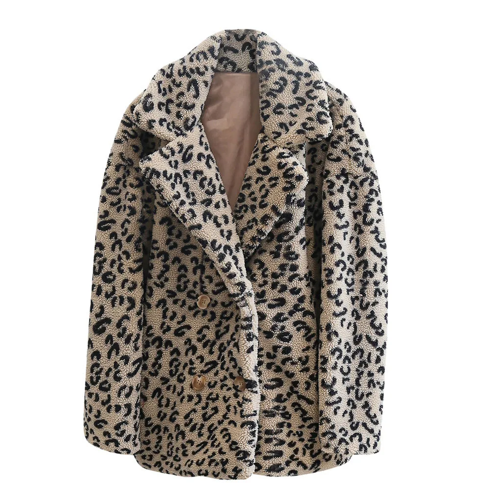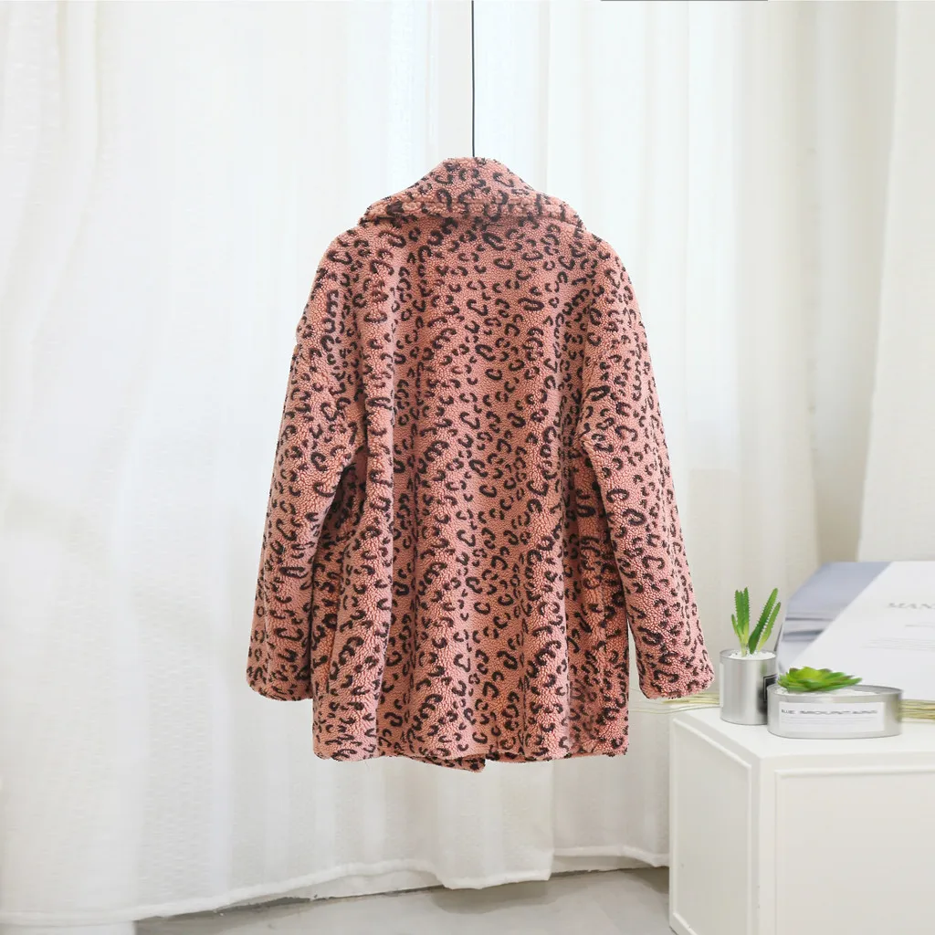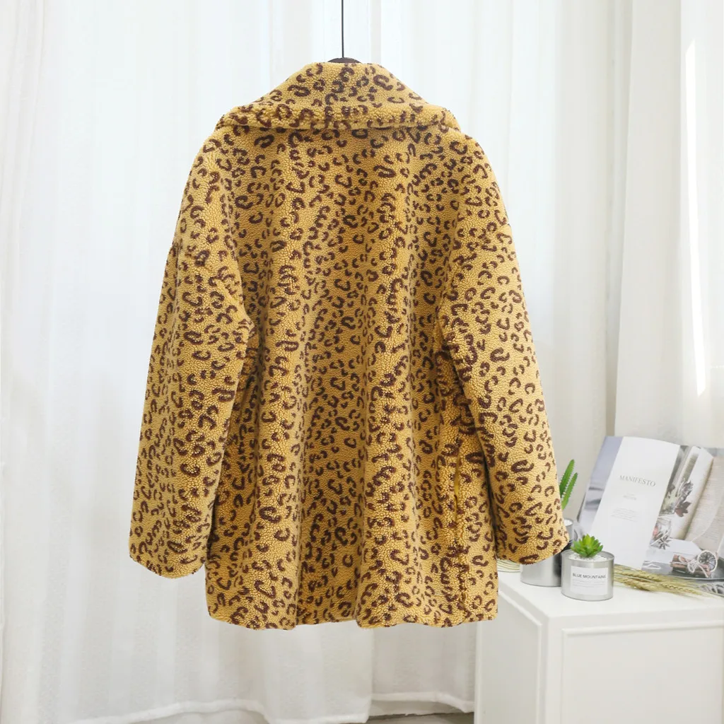 Women Fashion Autumn And Winter Leopard Print Loose Short Windbreaker Lamb Coat