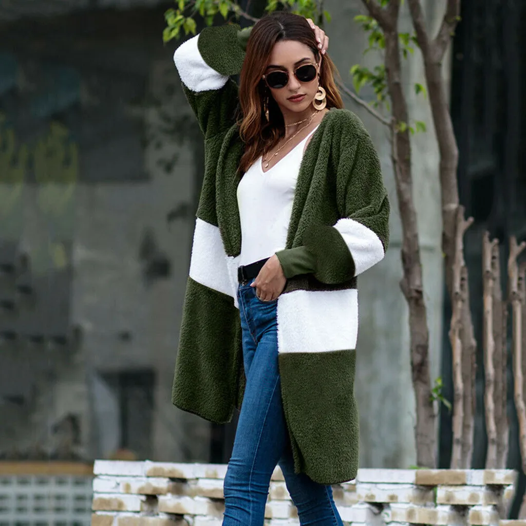 1. Особенности: модное женское пальто, длинный рукав, открытый трикотаж, пэчворк, кардиганы, принт, пальто.