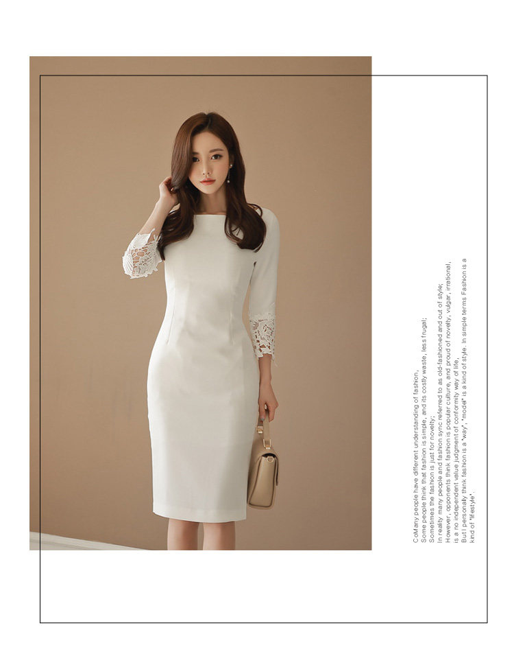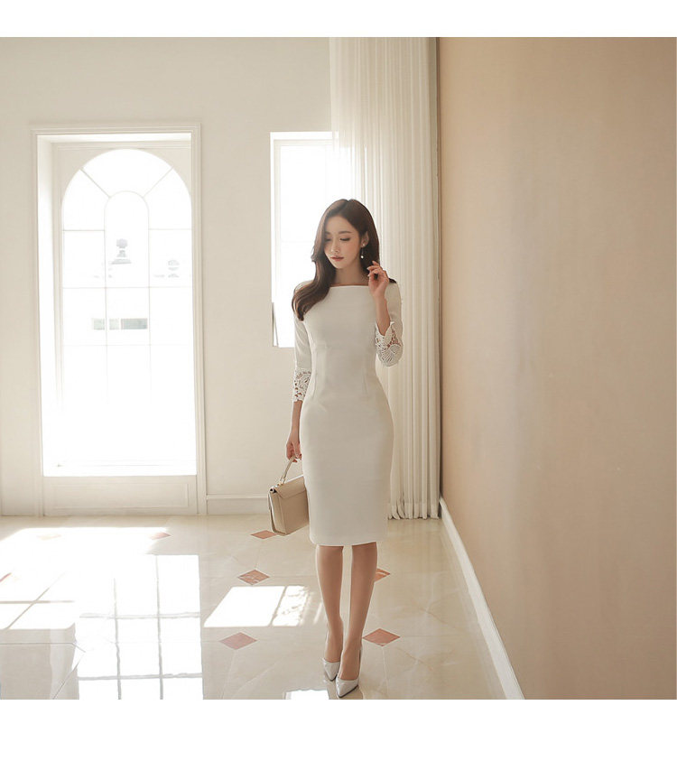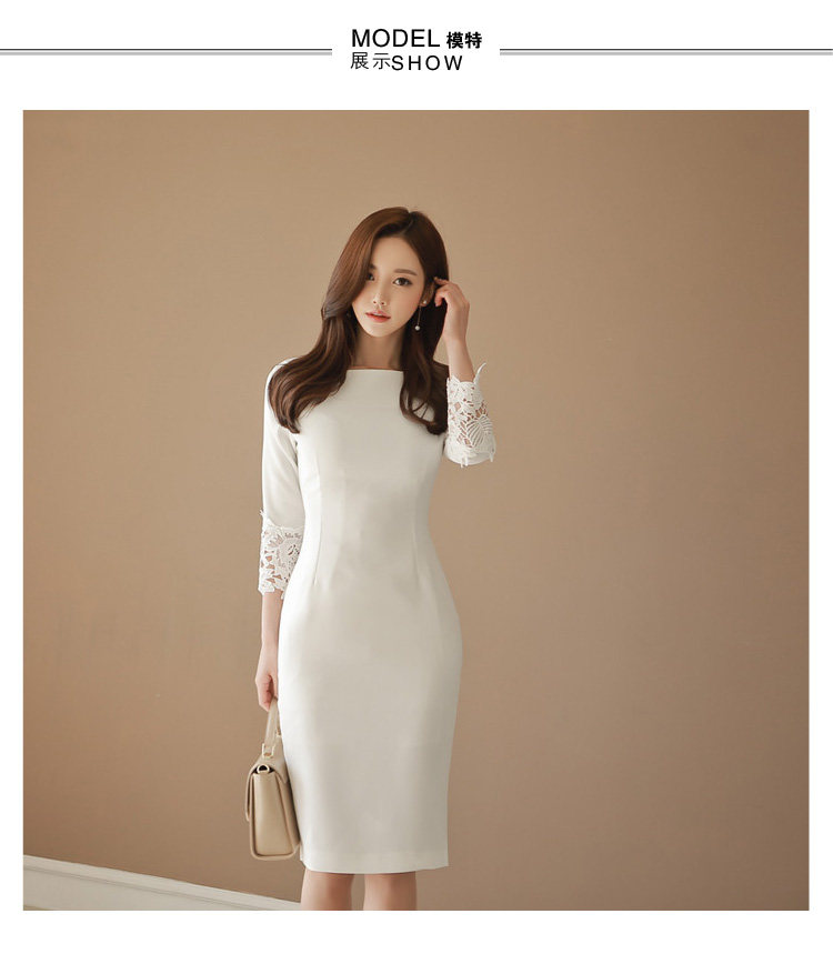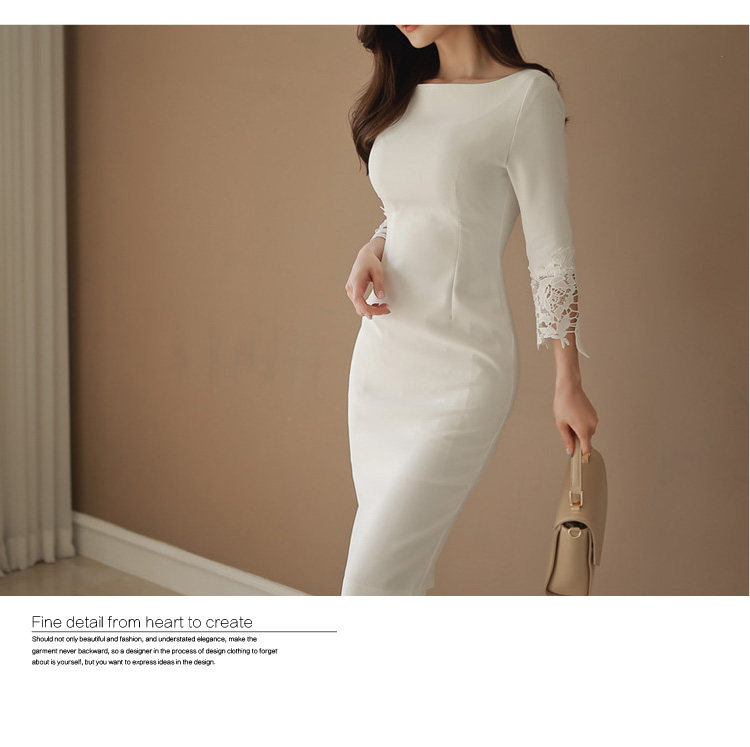 Женское кружевное лоскутное белое офисное платье весна осень 2019, однотонное винтажное облегающее Вечернее Платье Vestidos De Festa AQ103