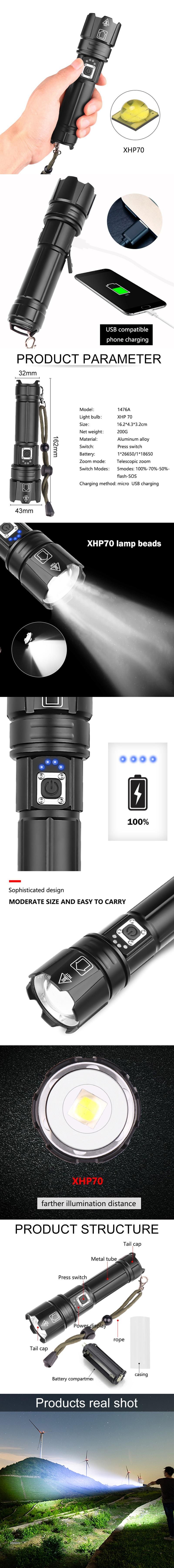 5 режимов: ультра яркий/Высокий/низкий/Стробоскоп/SOS