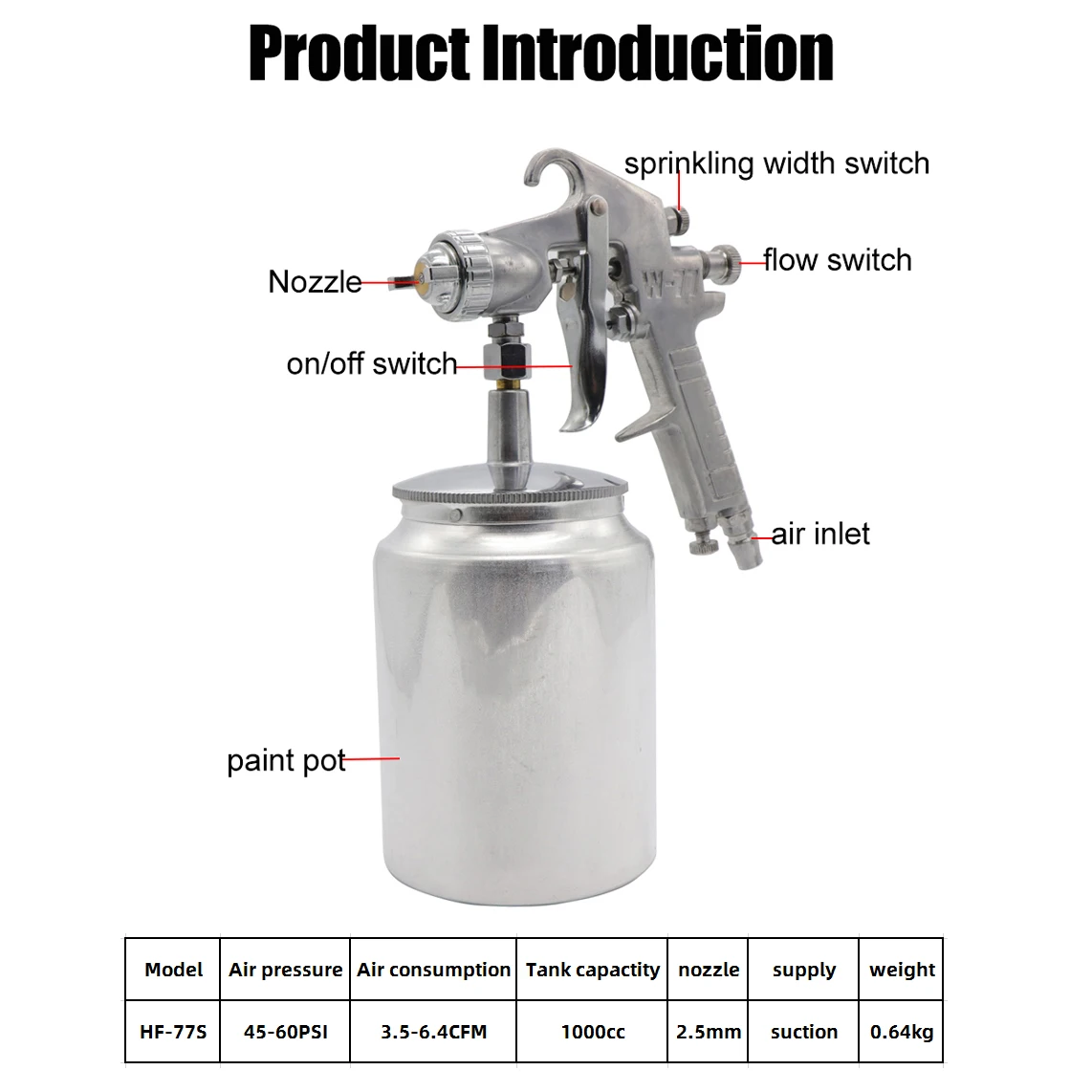 2.5mm 1000cc Pneumatic Mini Paint Spray Gun Tool Nozzle AirBrush Pen for Car Commercial Painting