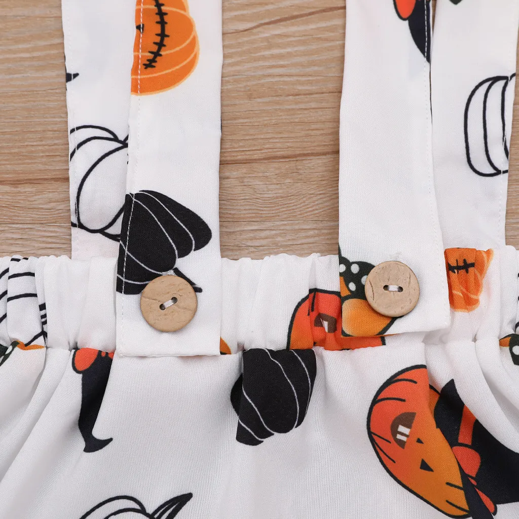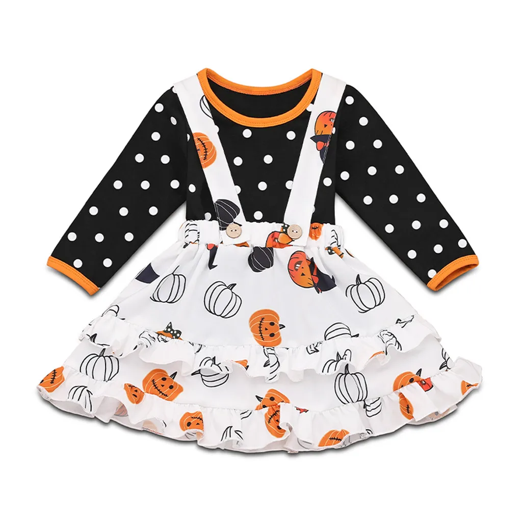 Детская футболка в горошек с тыквой на Хэллоуин для маленьких девочек комплект юбки на подтяжках