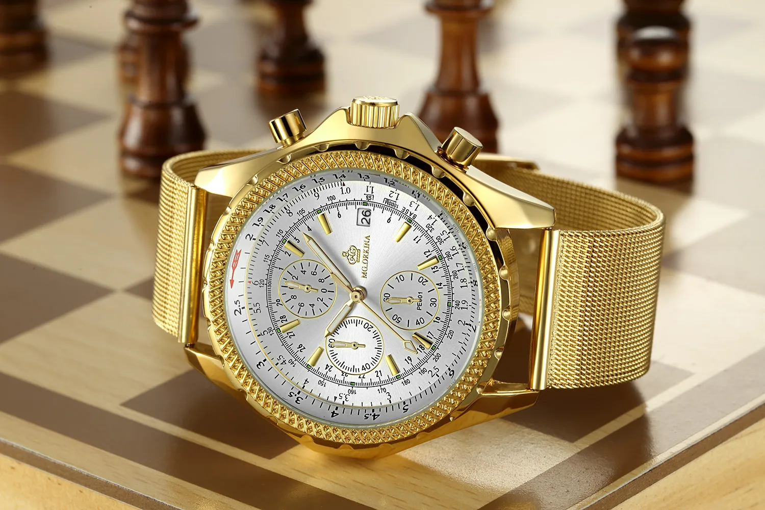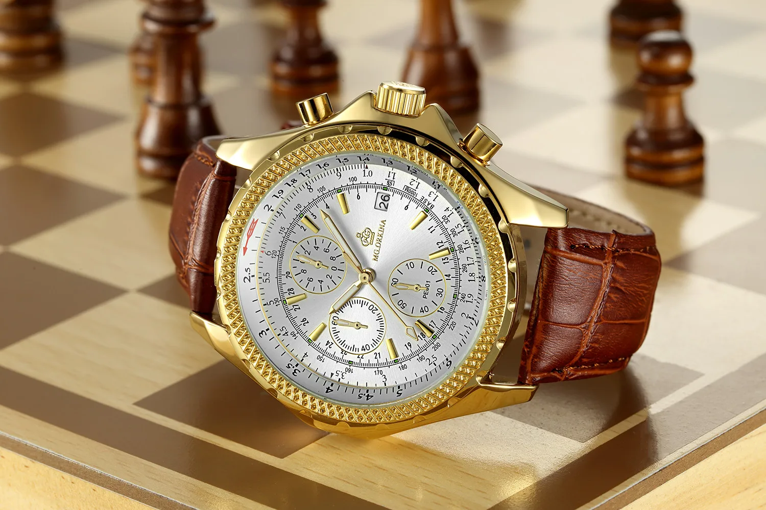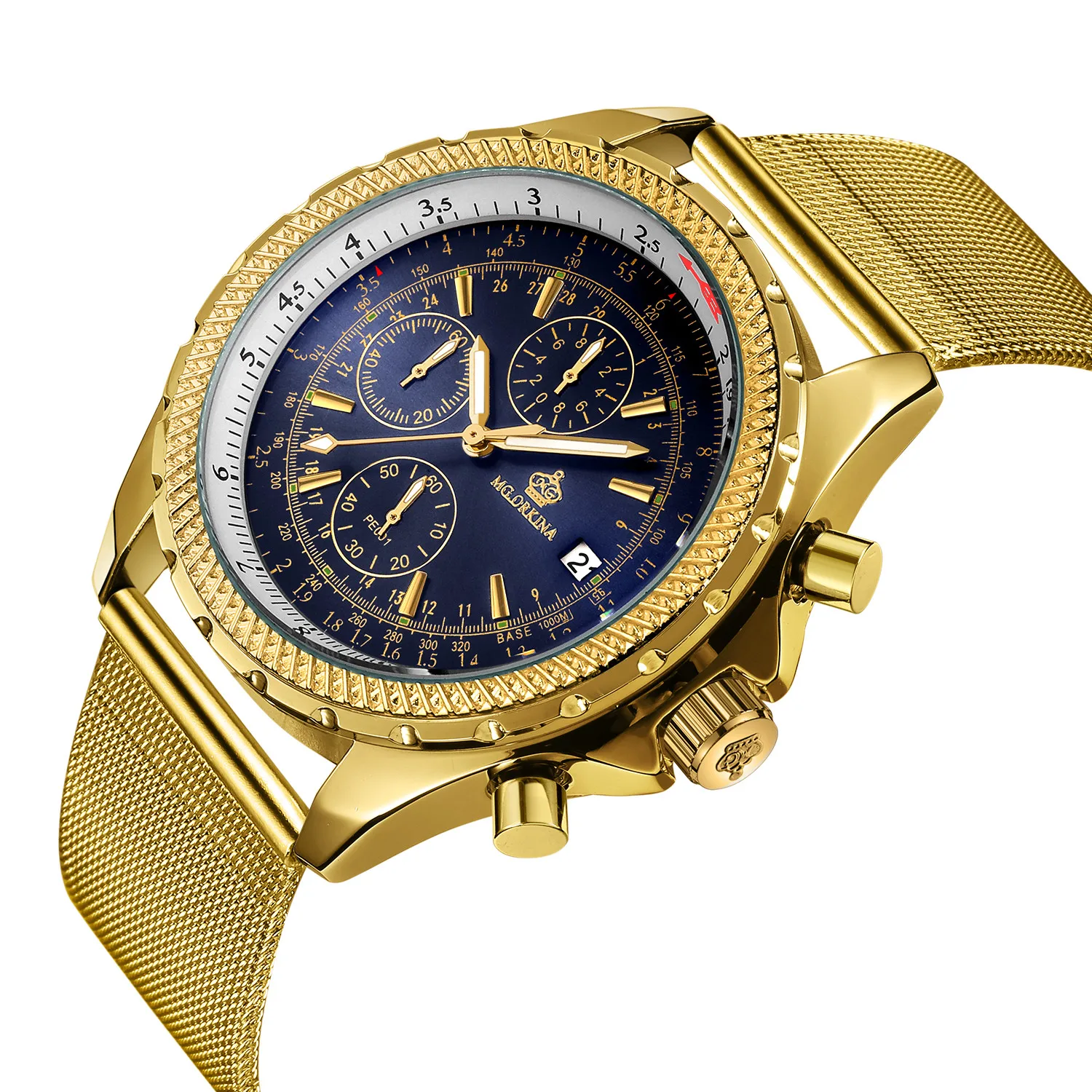 Размеры: Размер корпуса часов: approx.47 мм Ширина ремешка часов: около 24 мм Чехол Толщина: Approx.16mm Длина Часов: около 240 мм (1 см = 10 мм = 0,394 дюйма) Особенности: Хронограф Автоматическая Дата Тепло Примечания: Эти часы Водонепроницаемость в повседневных условиях. (не для купания, душа или плавания)