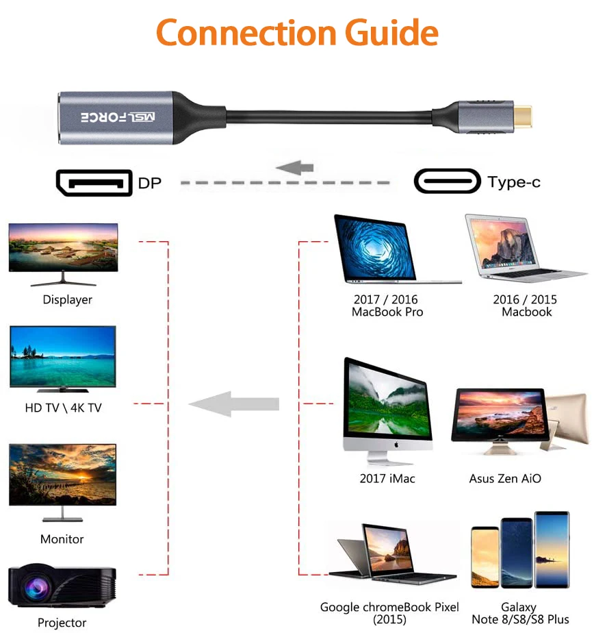 Алюминиевый сплав, ультратонкий дизайн Лучшие подарки для ваших ноутбуков, планшетных ПК, смартфонов с USB-C с выходом DP, для расширения или зеркала с дисплеями со слотом DisplayPort Больше MSLFORCE USB C адаптер для ваших устройств USB C