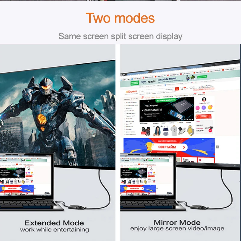 Этот адаптер поддерживает ios /windows/chrome os system. Если у вашего ноутбука есть 2 порта usb-c, вы можете использовать 2 из этих продуктов для подключения 2 дисплеев вместе, чтобы вы могли использовать 2 дисплеев одновременно.