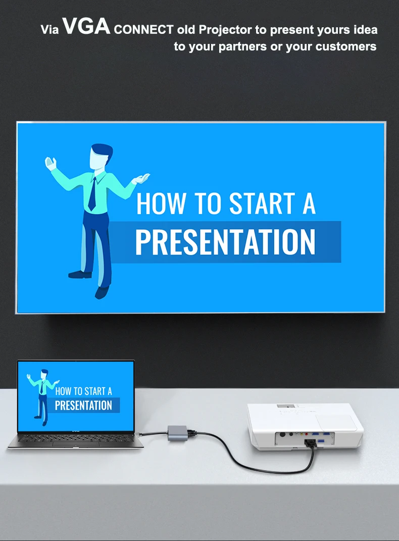 Если вы выходите UH-дисплей, телевизор, проектор и другой монитор с HDMI, возможно, вам нужен преобразователь из VGA в HDMI.
