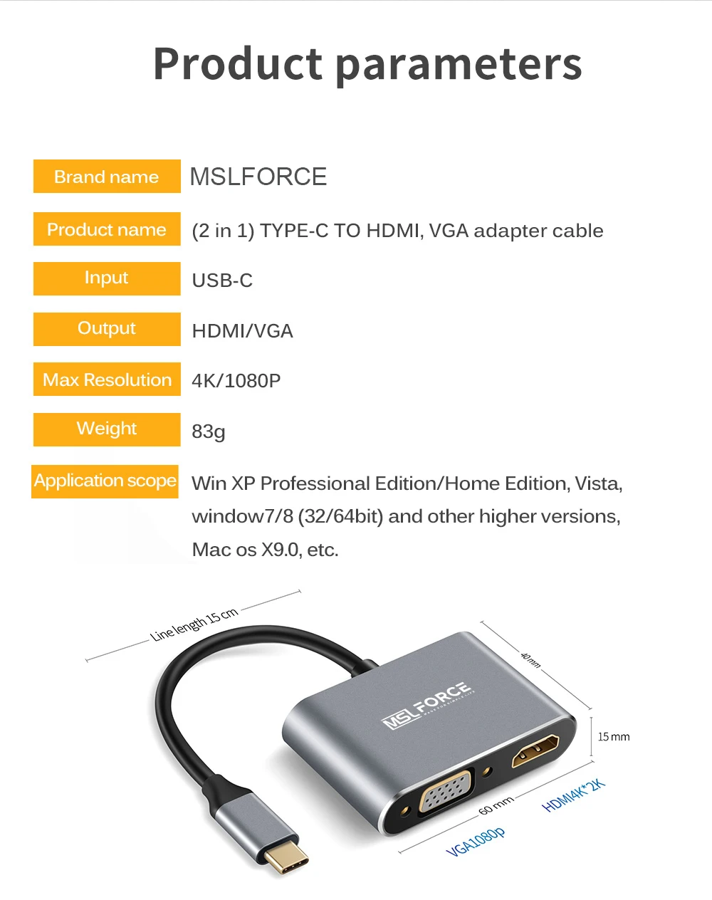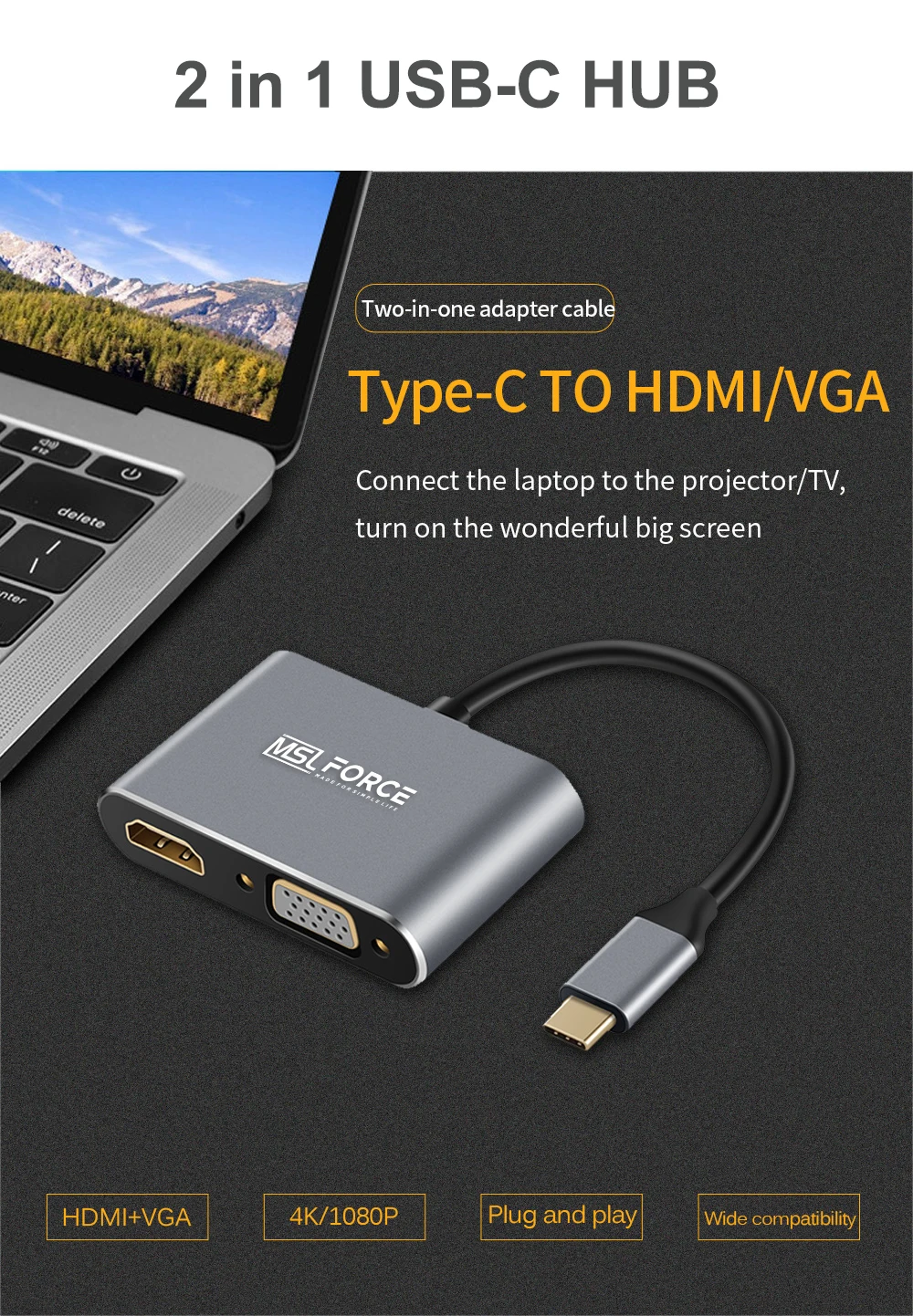 2 в 1 USB-C концентратор HDMI VGA адаптер