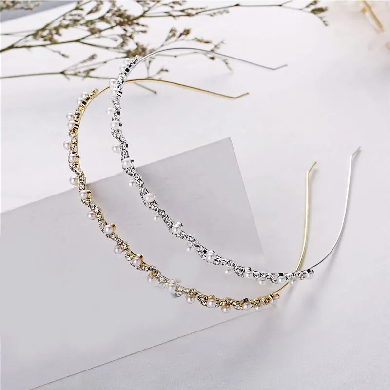 1Pc Crystal Rhinestone Pearl Hair Hoop Headband Bridal Wedding Hair Accessories