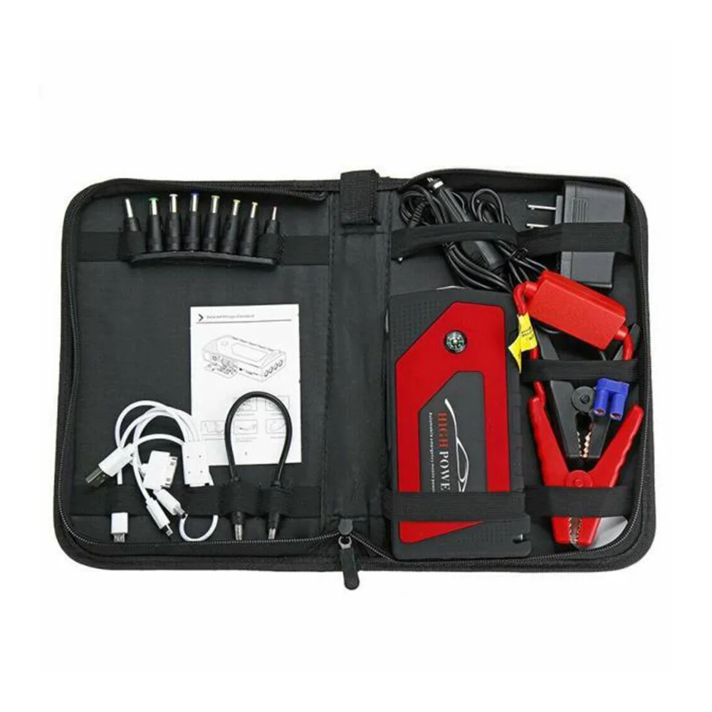1х автомобильный стартер, внешний аккумулятор 1x 4-Tip зарядка через USB кабель 1x трос скакалка 8x головки зарядного устройства для ноутбука 1x автомобиля Зарядное устройство 1 шт., бытовой адаптер питания 1x зарядное устройство usb 1x Руководство пользователя 1 x сумка