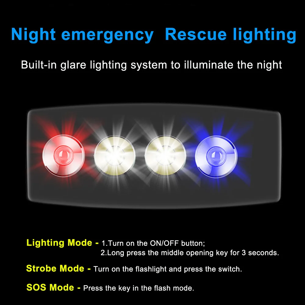 1. Из-за особенностей съемки и разрешения экрана, есть некоторые различия между цветом изображения и объективом, выберите предмет в качестве стандартного. 2. При зарядке пускового устройства поверните кнопку в положение, сделав ее энергичной в состоянии. 3. Двумя способами являются белый светильник s, а следующими двумя являются красный и синий светильник. 4 светодиодный Рабочий фонарь: Переключитесь в положение on, нажмите длинную круглую кнопку, два средних светодиода будут включены; Снова нажав круглую кнопку, два светодиода будут выключены. Нажмите дважды на круглую кнопку, чтобы включить красный и синий сигнал SOS.