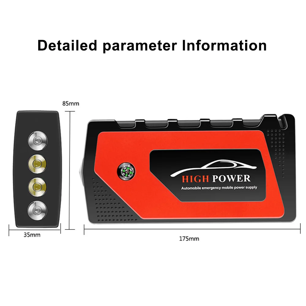 -100% новый бренд и высокое качество сделано. -Поддержка бензиновых автомобилей 12 В, 6,0 л и дизельных двигателей 12 В, л, запуск автомобиля мгновенным образом. -Аккумулятор высокой мощности, который поддерживает быструю зарядку, низкий саморазряд, циклы могут достигать 1000 раз. -Поддержка запуска и зарядки автомобиля 12 В для различных сотовых телефонов, PSP, MP3/MP4, планшетов, смартфонов, PDA, ноутбуков и ноутбуков. -При зарядке Световые индикаторы мигают один за другим. Кол-во сдал световых индикатора указывает на емкость батареи банка. -4 usb-разъема для удовлетворения ваших многократных потребностей в зарядке телефонов и ноутбуков. -Конструкция с защитой от нескольких повреждений обеспечивает пусковое устройство без дефектов.