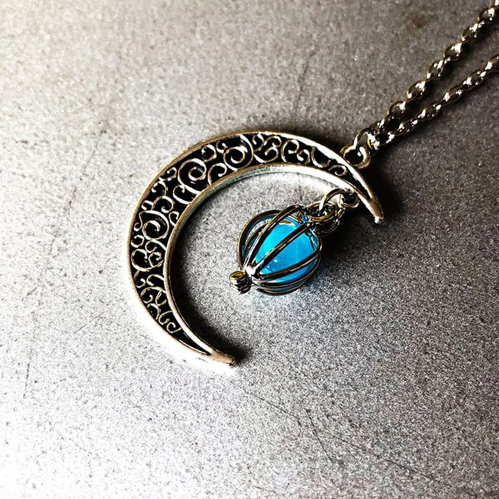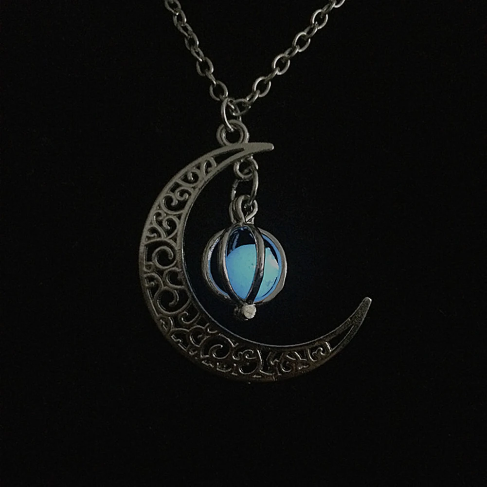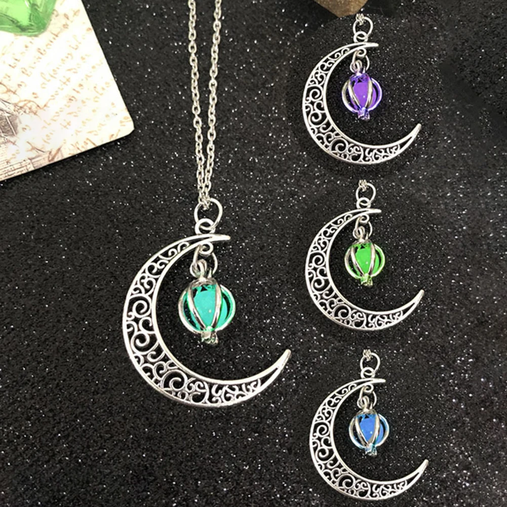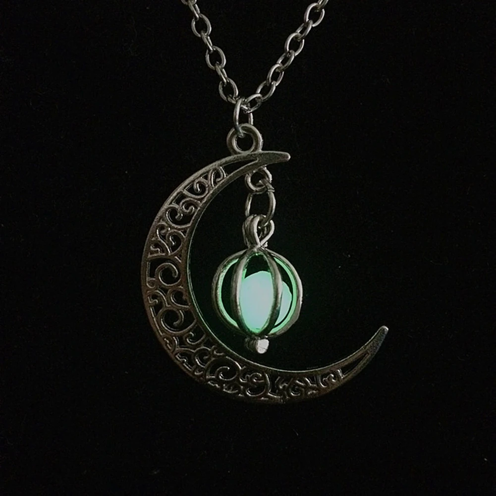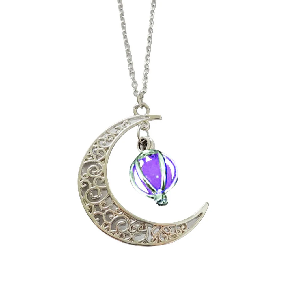 Женская Мода полый Луна клетка кулон светящийся яркий цепочка ожерелье ювелирные изделия