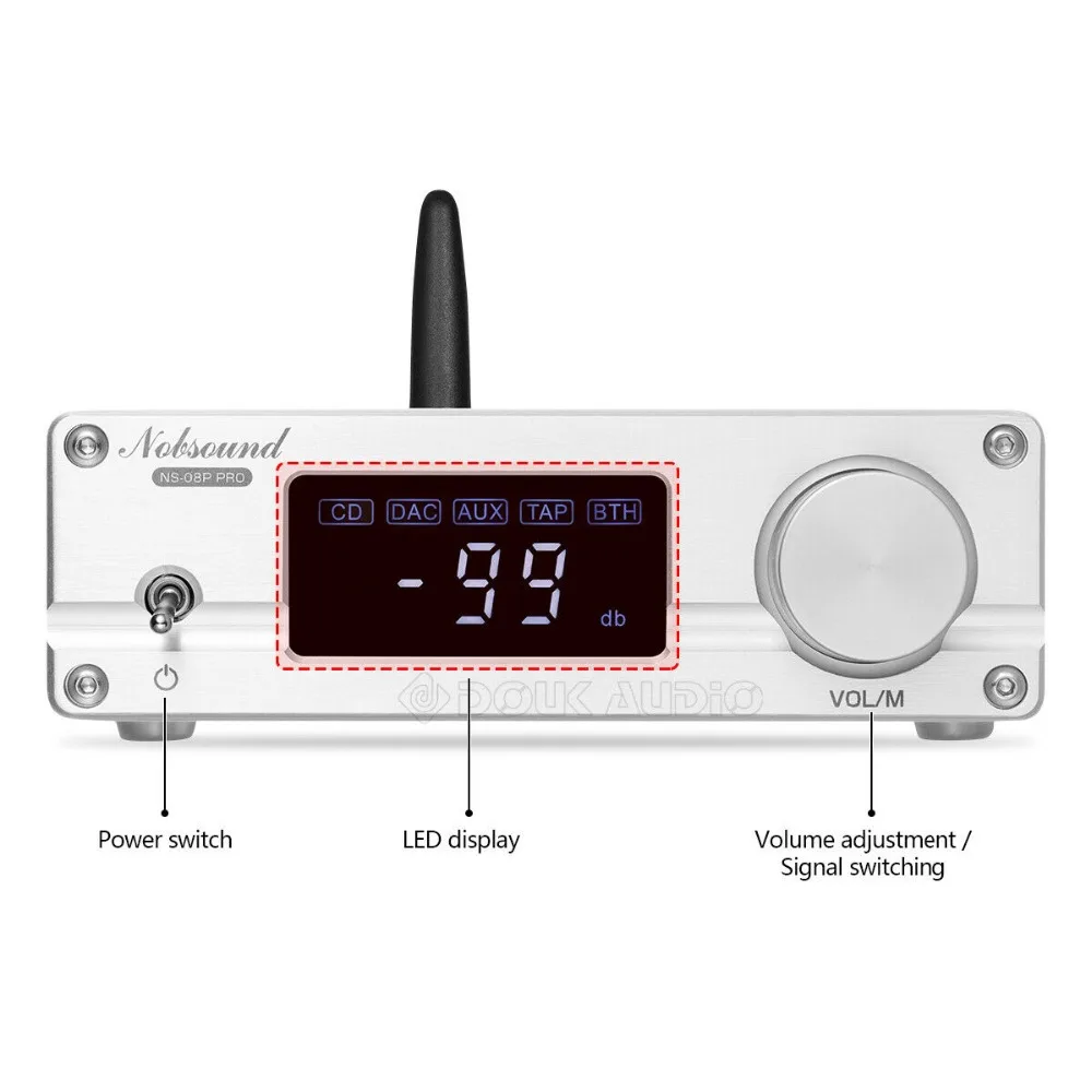 Bluetooth-чип QCC3008, поддерживает APTX, APTX-Низкая задержка, обеспечивает более быструю и стабильную передачу данных, идеально совместим с различными bluetooth-устройствами.Мини-размер с привлекательным внешним видом, с пультом дистанционного управления и светодиодным дисплеем, очень удобен в использовании; Серебристое алюминиевое шасси выглядит более модно и изысканно, очень подходит для домашнего и настольного использования аудиосистемы.