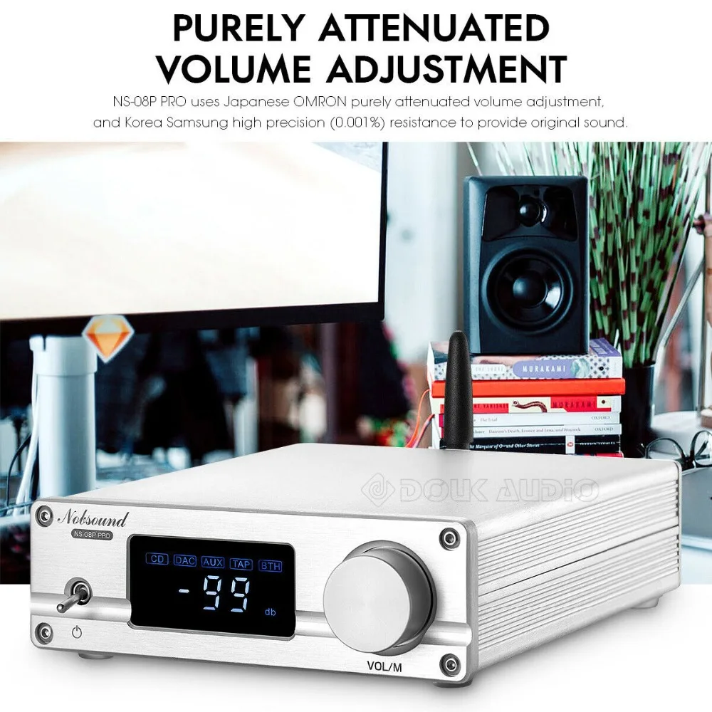 Чистый механический регулятор громкости: использование японского OMRON 128 уровня реле чисто Ослабленная Регулировка громкости, и Корея Samsung Высокая точность (0.001%) сопротивление для обеспечения оригинального звука. Нет помех, нет аудио рендеринга и выключатель без потерь, звуковое поле более широкое и естественное.