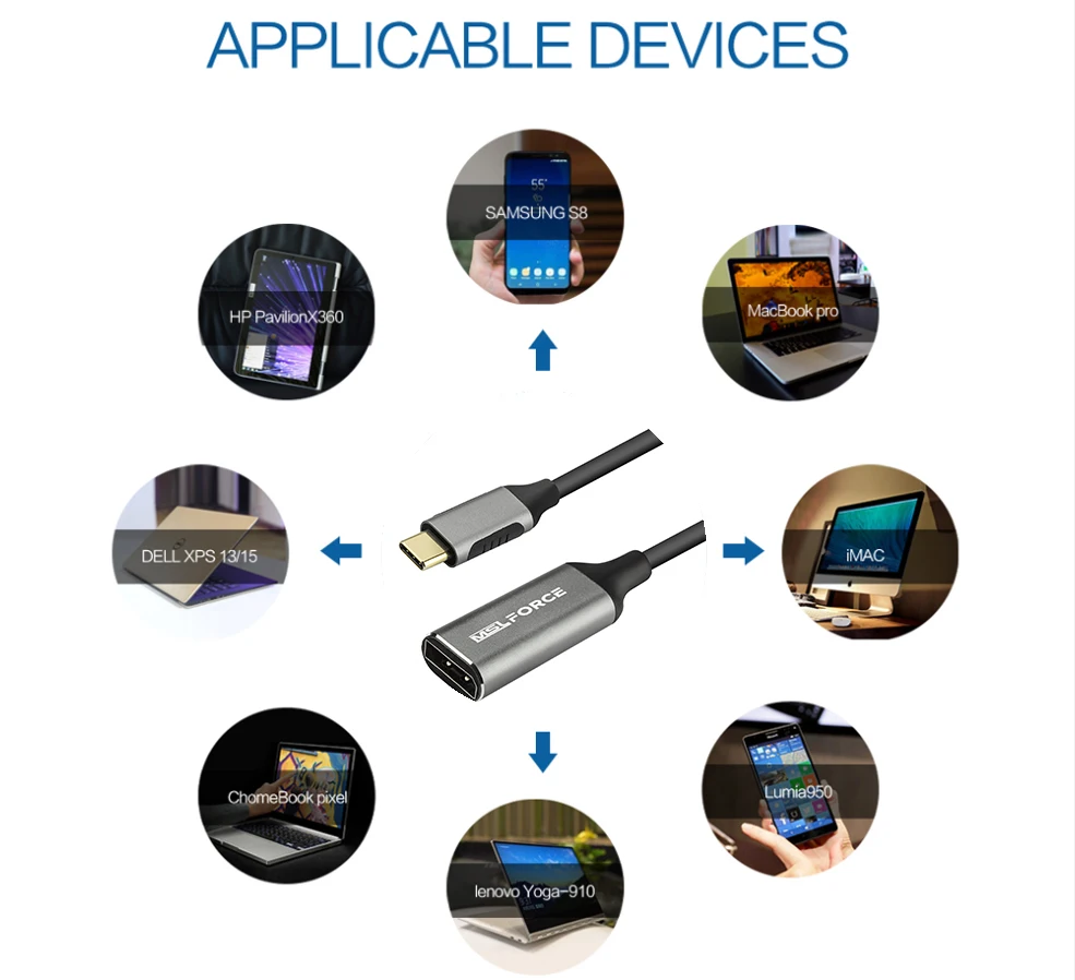 Этот кабель типа C для Mini displayport работает с MacBook Pro 2018/2017/2016, iPad Pro 2018, iMac, Dell XPS 15/13, Surface book 2, Lenovo Yoga 910, samsung Galaxy Note 8/ S8/ S8 Plus/S9, Lumia 950/950XL, Huawei Mate 10, HTC U11 и т. д. (Совместим практически со всеми ноутбуками usb c, Но для телефона/планшета USB C нужен телефон/планшет usb c с режимом DP alt)