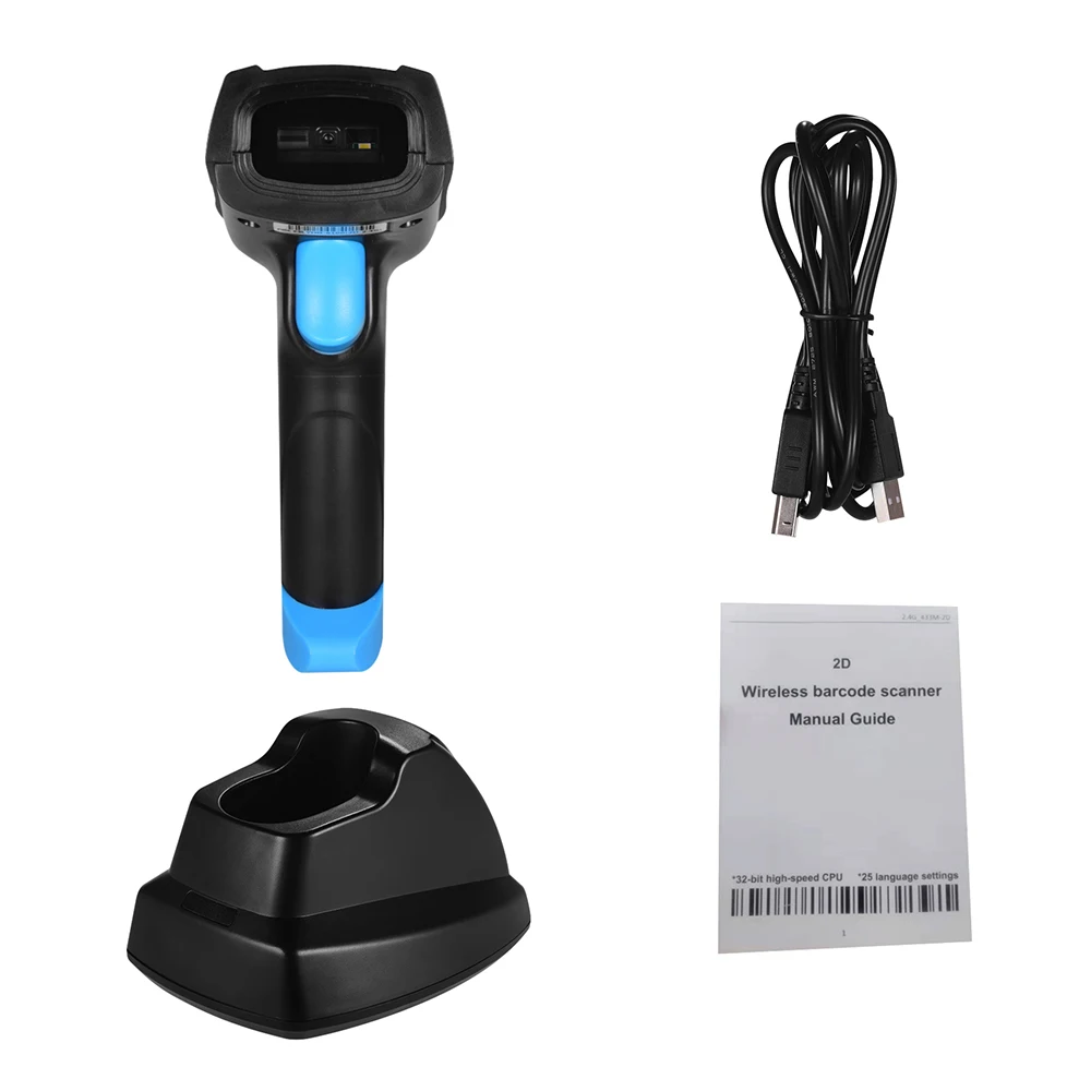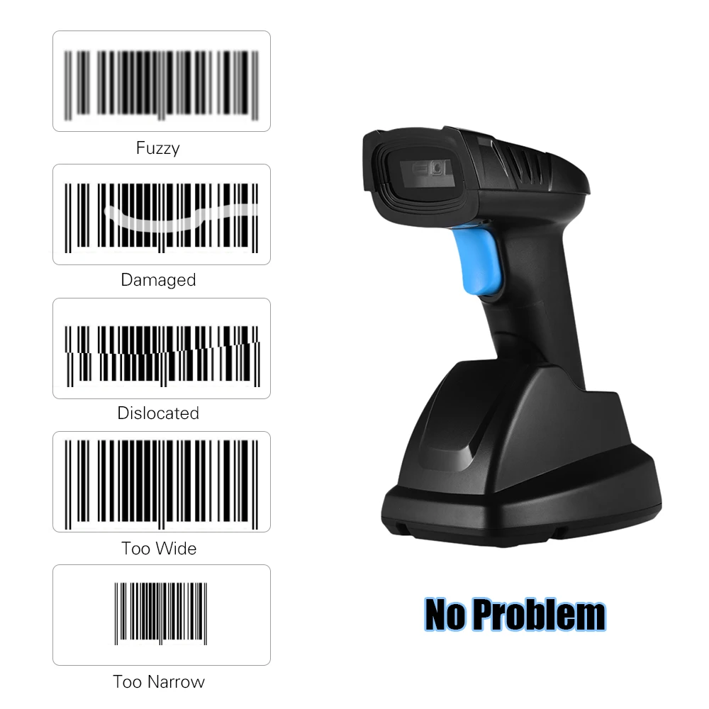 База сканера также работает как зарядное устройство и приемник, а сам сканер не должен подключать какой-либо кабель. В сканер штрих-кода может хранить около 100000 штрих-кодов в автономный режим хранения, очень удобно в использовании.