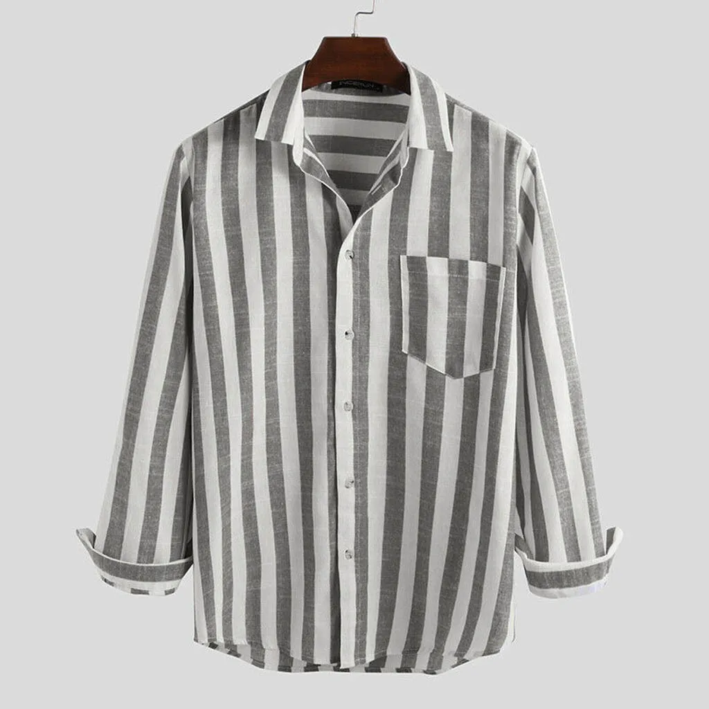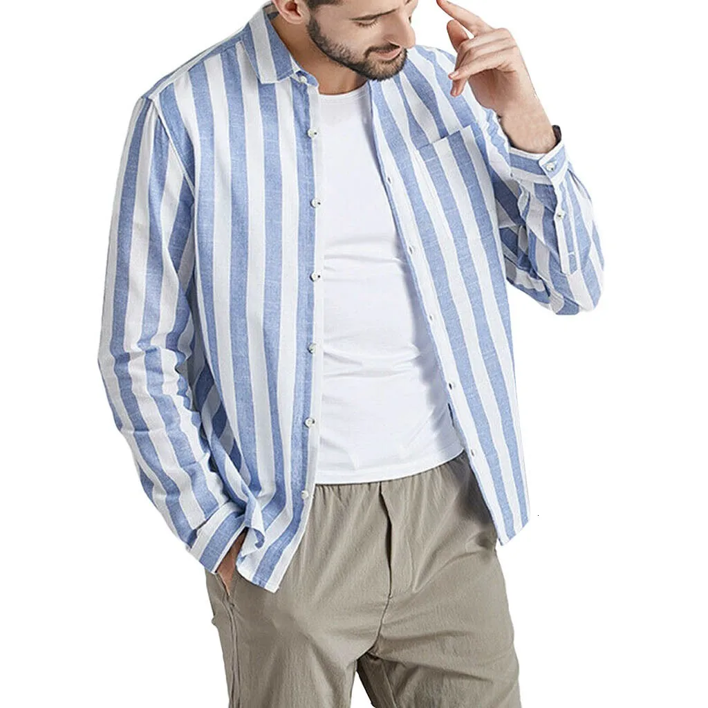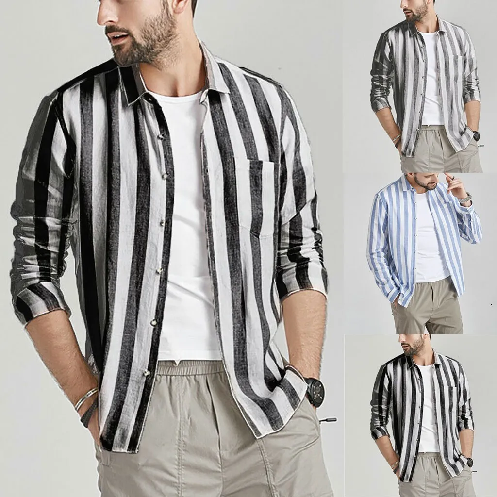 Мужские Винтажные полосатые льняные однотонные ретро рубашки с длинными рукавами Топы Блузка