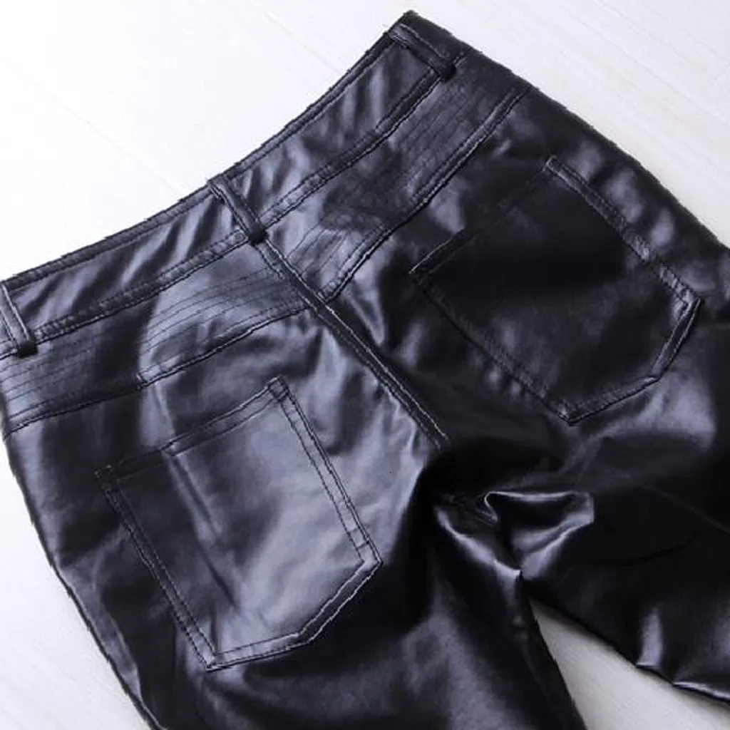 Мужские Новые Модные осенние зимние байкерские облегающие кожаные длинные брюки