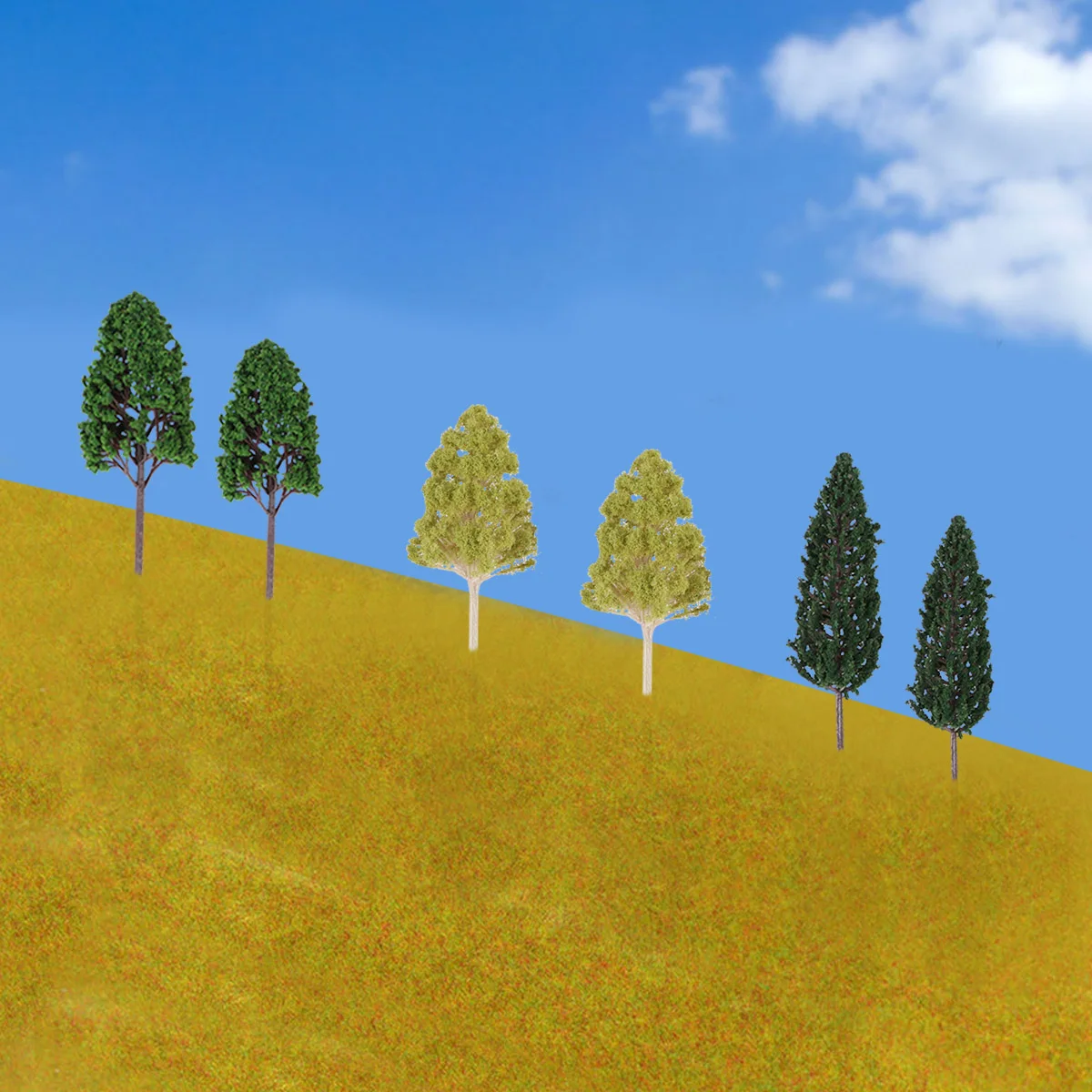 Этот товар представляет собой набор из 27 моделей деревьев разных размеров, они изготовлены из пластика. С зелеными листьями и коричневыми болтами, это прекрасное украшение для дома, стола, гостиной, кухни и т. д. идеально подходит для улучшения внешнего вида вашей модели пейзажа с оттенком зелени.
