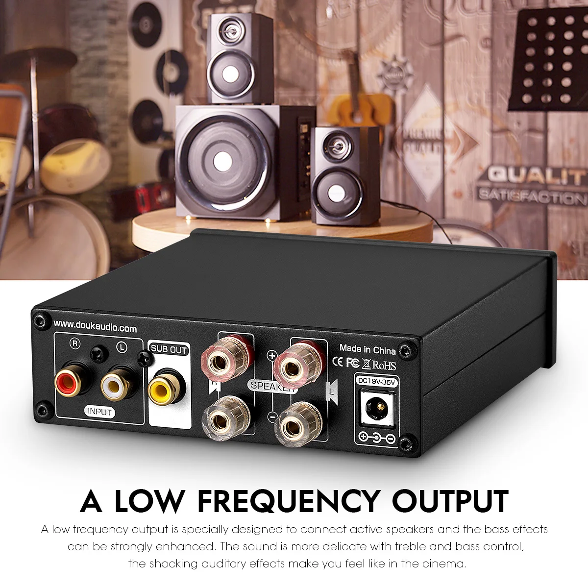 Низкочастотный выход специально разработан для подключения активных динамиков, и эффект басов может быть усилен. Звук более деликатный с высокими частотами и контролем басов, шокирующие слуховые эффекты заставляют вас чувствовать себя в кинотеатре.