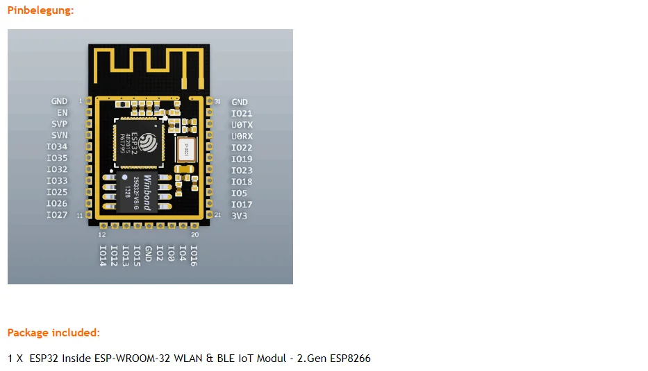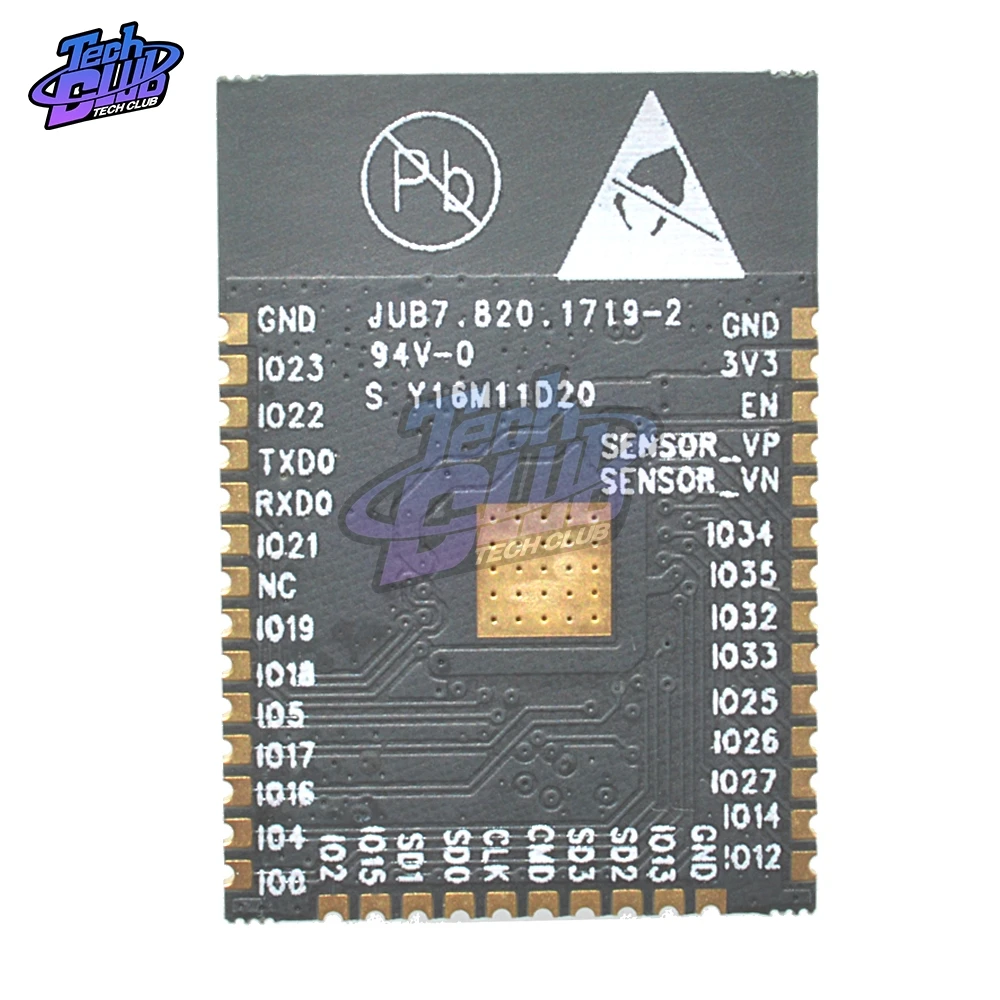ESP-WROOM-32 питается от самого продвинутого SoC Espressif, ESP-WROOM-32 отличается высокой производительностью, широким спектром периферийных устройств, Wi-Fi и Bluetooth радио, которые обеспечивают полное решение, адаптированное к передовым приложениям IoT. 240 МГц двухъядерный микроконтроллер Tensilica LX6 с 600 DMIPS Интегрированный 520 КБ SRAM Интегрированный 802.11BGN HT40 Wi-Fi трансивер, baseband, stack и LWIP Встроенный двойной режим Bluetooth (классический и BLE) 16 Мбайт флэш-памяти 2,2 V до 3,6 V рабочее напряжение -40 °C до + 125 °C рабочая температура Бортовой PCB антенна/IPEX Разъем для внешней антенны Поддерживает sniffer, station, softAP и Wi-Fi прямые режимы Максимальная скорость передачи данных 150 Мбит/с @ 11n HT40, 72 Мбит/с @ 11n HT20, 54 Мбит/с @ 11g и 11 Мбит/с @ 11b Максимальная мощность передачи 19,5 дБм @ 11b, 16,5 дБм @ 11g, 15,5 дБм @ 11n Минимальная чувствительность приемника-98 дБм 135 Мбит/с UDP устойчивая пропускная способность 2,5 мкА глубокий ток в спящем режиме