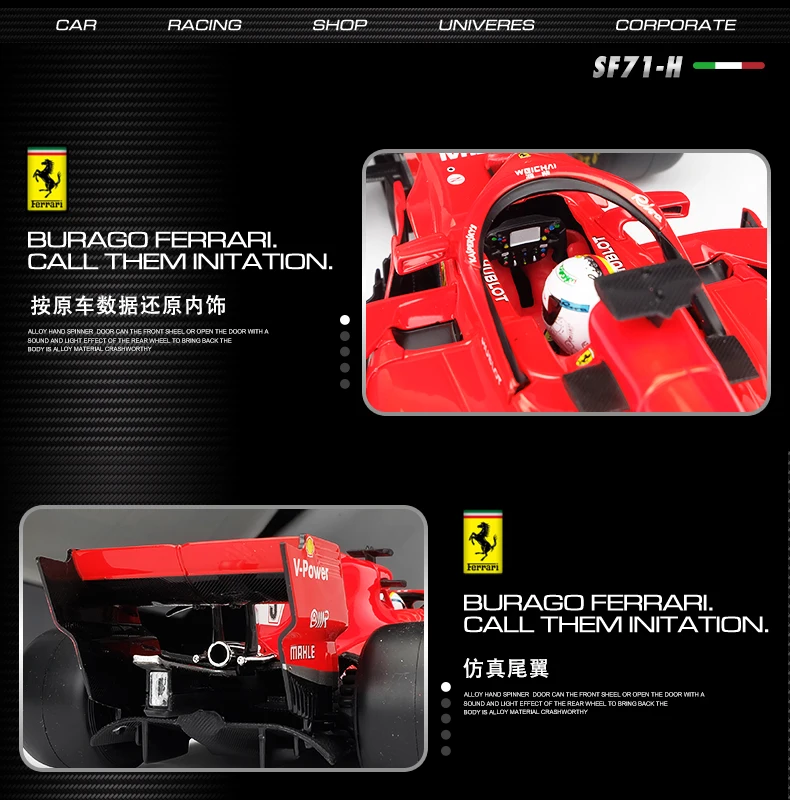 [Название модели]Гоночный автомобиль Formula 1[Бренд модели]Bburago[Материал модели] цинковый сплав/ABS/Резина[Соотношение модели автомобиля]1:18[Цвет модели]Белый/матовый серый[Стандарт упаковки] картонная прозрачная упаковка, модель с базовым дисплеем[Метод обслуживания] при очистке вы можете заполнить немного спирта и протереть его сухой тканью. Не протирайте водой.[Функция модели автомобиля] две двери могут быть открыты + капот может быть открыт + Рулевое колесо и переднее колесо не связаны