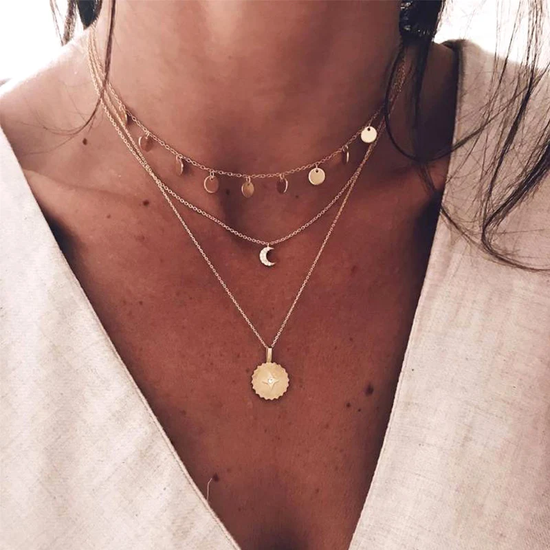 Богемное ожерелье с подвеской для женщин, длинная цепочка, Круглый Шарм, эффектное колье, ювелирные изделия