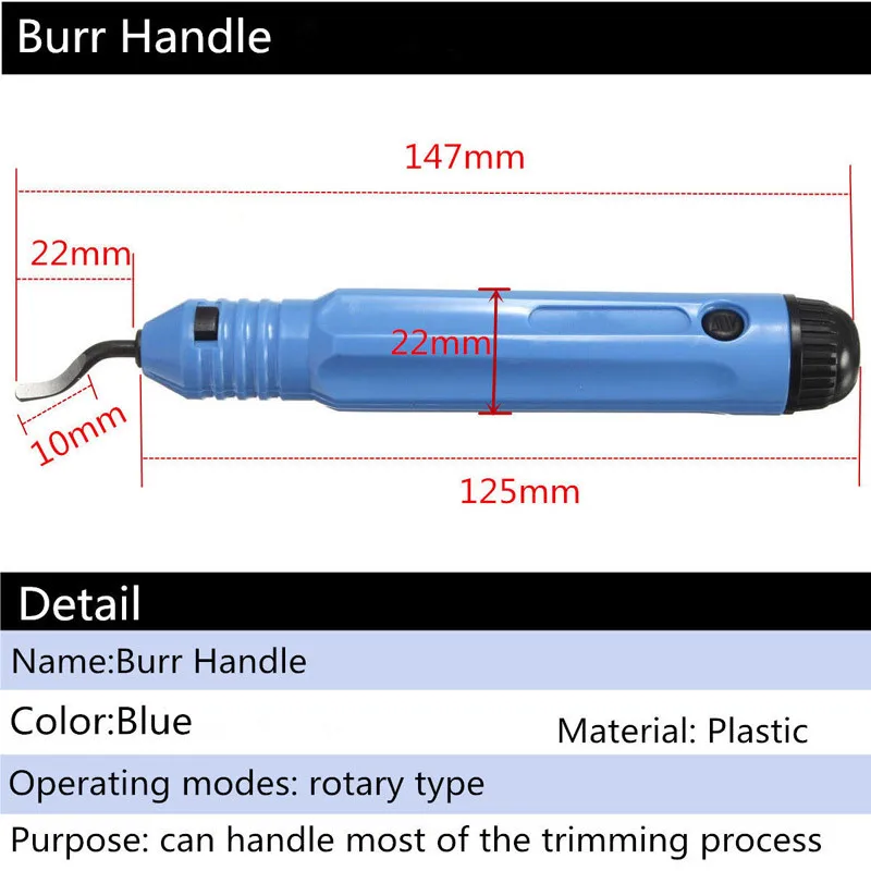 Лезвие для снятия заусенцев, ручная работа, простота в использовании и гибкость. Инструмент принимает острые режущие края для резки, обработка поверхности высокая гладкость. Инструмент небольшого размера, вы можете носить с собой в любом месте, вы можете заменить лезвие простым нажатием кнопки. Лезвие устанавливается на ручке, его можно поворачивать на 360 градусов! Обработанная нержавеющая сталь, алюминий, резина, пластик и т. д. Технические характеристики: Материал: M2 HSS & пластиковый угловой измерительный: 40 градусов твердость: 63RC лезвие Размеры: 47 мм * 3,2 мм (всего Длина * Диаметр) заусенцев ручка Размеры: 125 мм * 22 мм (Длина * Диаметр) Упаковка: 10 шт./кор. Подходит для: ПВХ, жесткий пластик, и не гладить. Положение обработки: край круглого отверстия, прямой край, изогнутые края. Не подходит для наружных краев, плоских. Посылка включает в себя: 1 шт. NB1100 ручка заусенцев (включая одно лезвие)