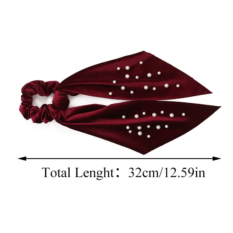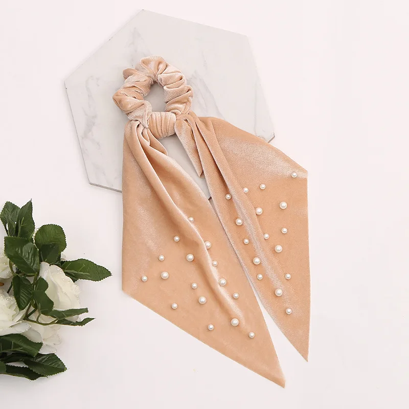 Мягкая бархатная резинка, Длинные растяжки, бант, жемчуг, эластичный хвост, веревка для волос