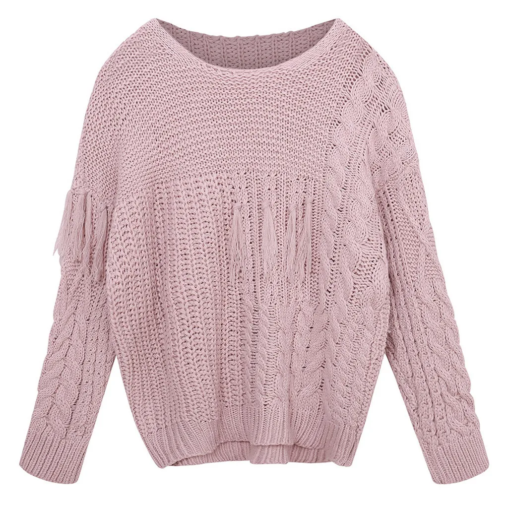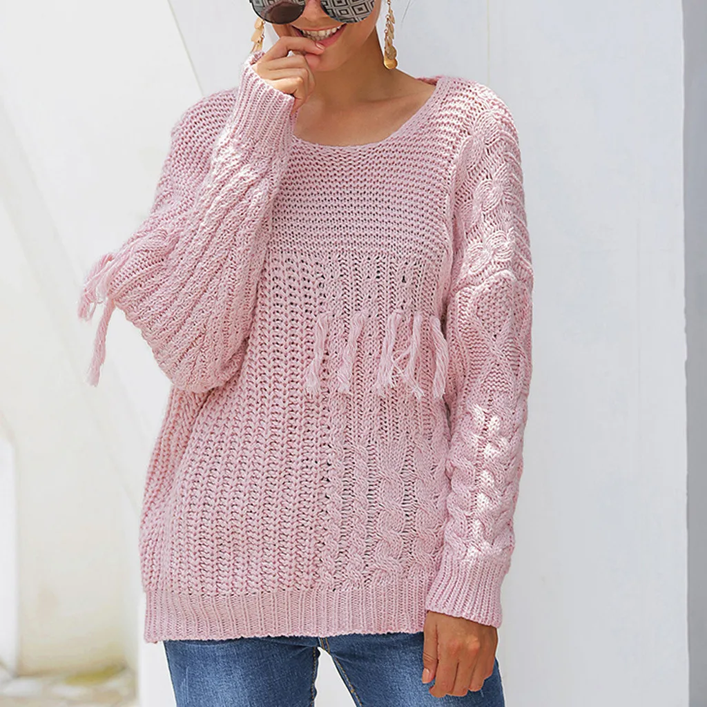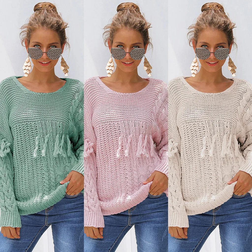 Женская Повседневная однотонная трикотажная блузка с круглым вырезом и длинным рукавом