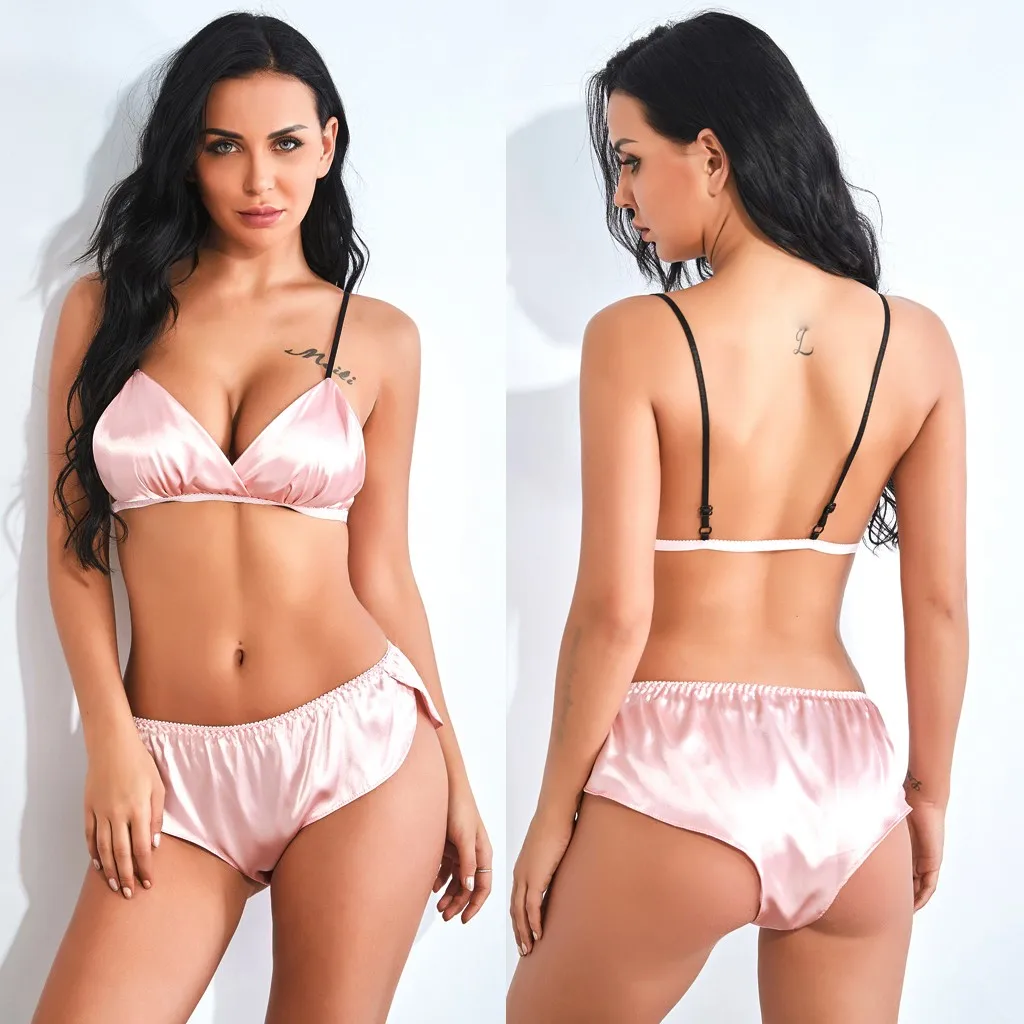 Новый женский атласный бюстгальтер, Шелковый мягкий розовый бюстгальтер, комплект с шортами, сексуальное нижнее белье, ночное белье, бесшовный бюстгальтер с эффектом пуш-ап, комплект бюстгальтера Femme