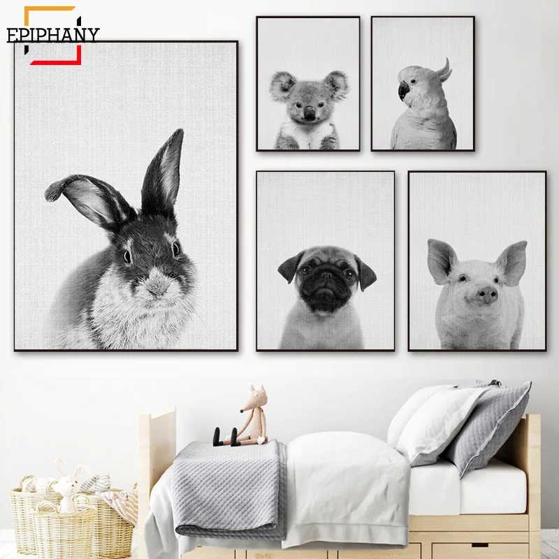 Черно-белый ВИНТАЖНЫЙ ПЛАКАТ для детской комнаты с животными скандинавские плакаты и принты настенная живопись на холсте настенные картины для детской комнаты декор