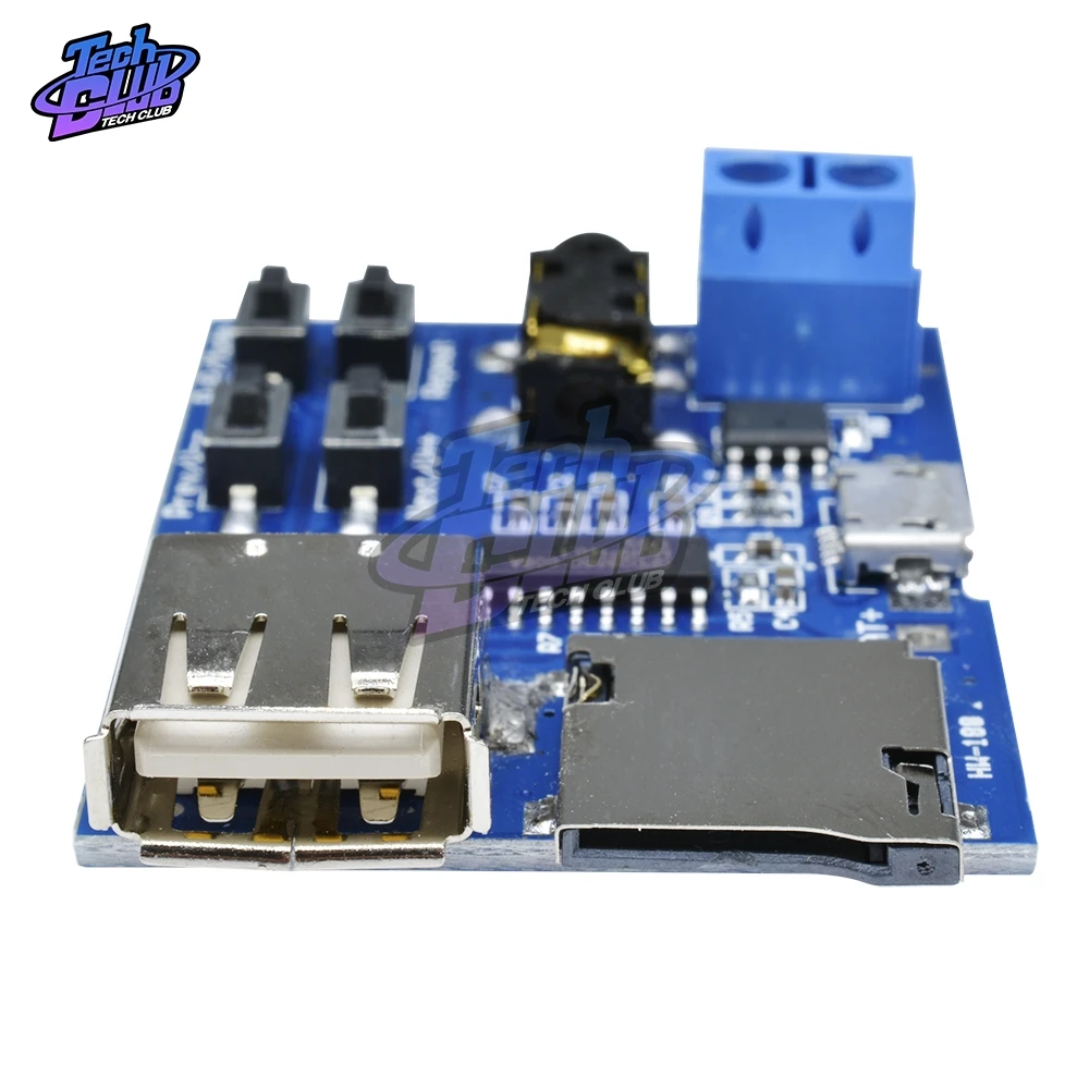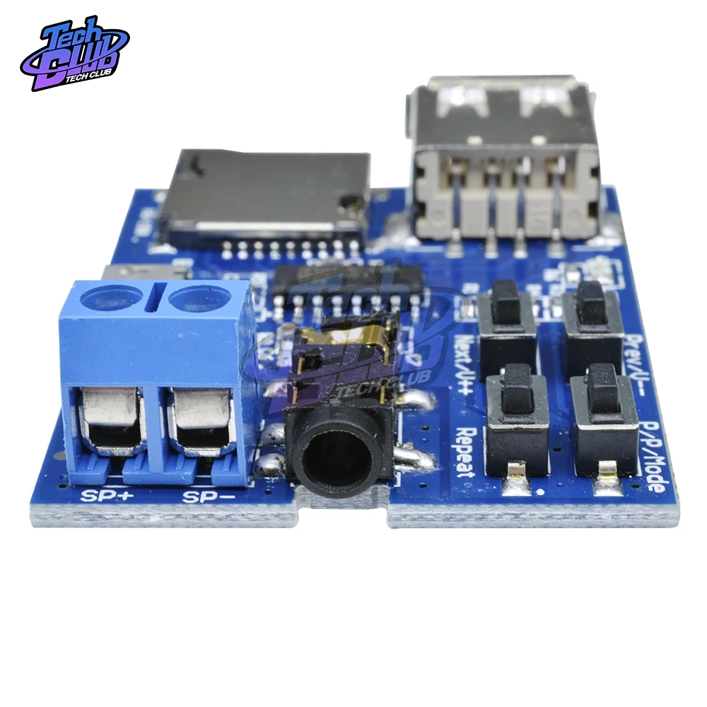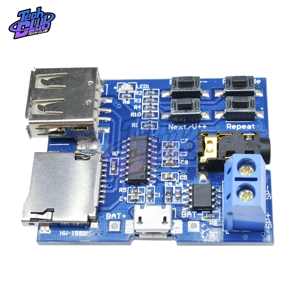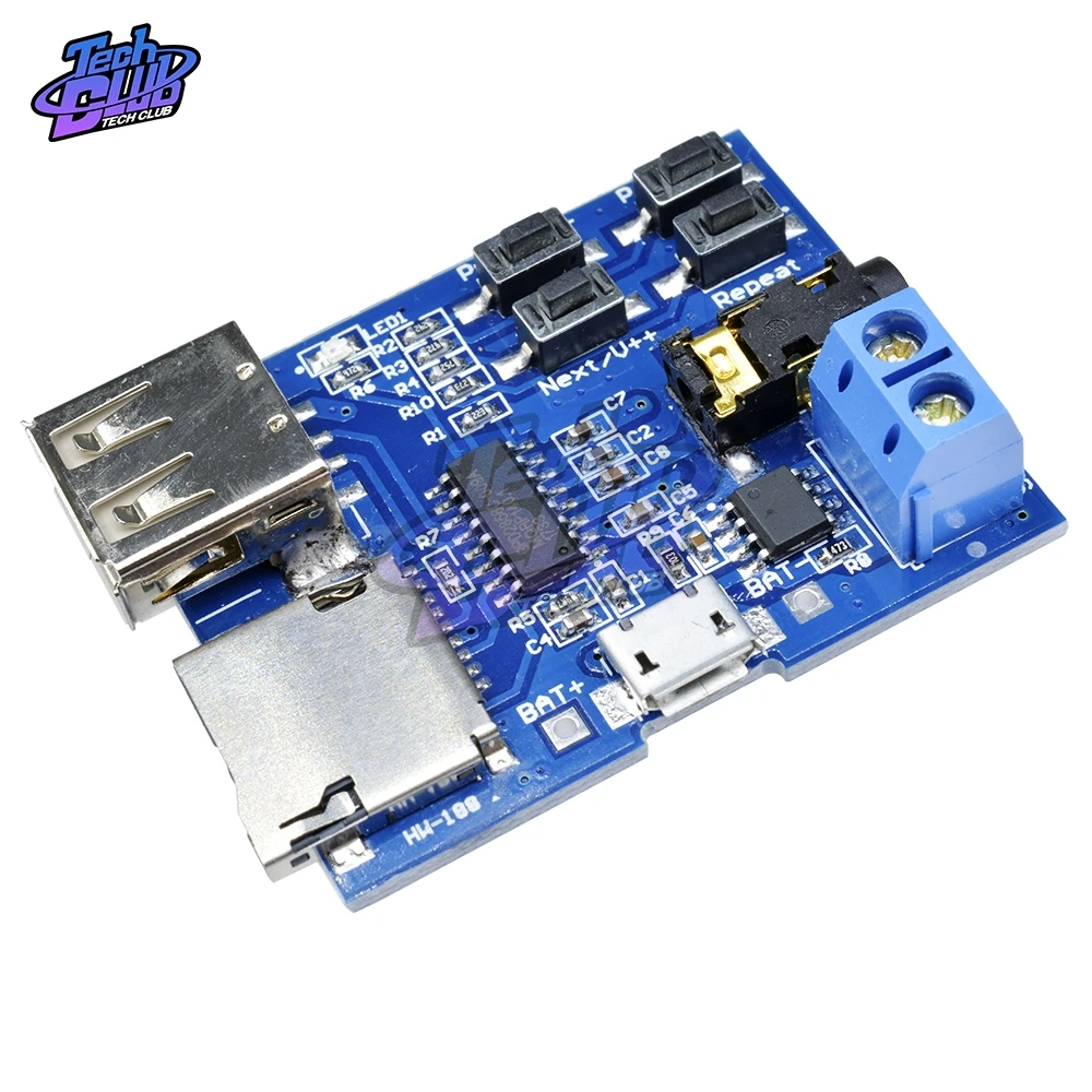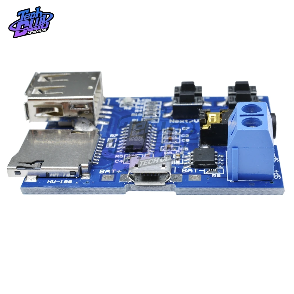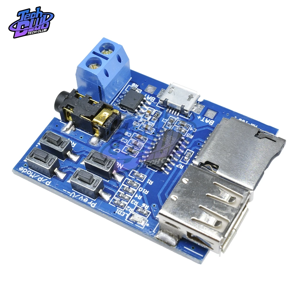 Особенности: Превосходное качество звука. Встроенный моно-Усилитель 2 Вт (мощность 5 В до 3 Вт) напрямую подключается к динамику (Рекомендация 4 Ω 3 Вт), 3,5 мм с позолотой для наушников можно подключить в наушниках или внешний аудио. L с портом MicroUSB. Через мобильный телефон линии передачи данных можно использовать мобильный источник питания или USB кабель для зарядки MP3 батареи, также можно использовать 3,7 V литиевая батарея, или USB 5V питания. L поддержка tf-карты (мобильный телефон, карта памяти) и U disk play mode. Без пайки с клеммами динамика для легкой проводки. L модуль предназначен для облегчения модификации. Описание продукта: 1) Поддержка формата MP3, включение питания автоматически. Когда mp3 воспроизводится, мигает красный светодиодный индикатор. 2) Поддержка u-диска (тест 32G), tf-карты (тест 16G) режим воспроизведения; Питание по умолчанию Режим tf-карты, если tf-карта не существует, автоматически перейти в режим U disk, и оба устройства установлены, то Вы можете вручную установить режим воспроизведения. Дополнительные сведения см. В инструкции по эксплуатации. 3) кнопки можно регулировать вверх и вниз, чтобы управлять песнями, громкость вверх и вниз, пауза или воспроизведение, Переключение режима. Дополнительные сведения см. В инструкции по эксплуатации. 4) нажмите кнопку меню, введите режим воспроизведения одной/всех песен. Режим по умолчанию-это режим «все песни» при включении. Нажмите кнопку «повторение», чтобы заменить режим циркуляции. Ключ инструкция по эксплуатации: Кнопка «Prev / V-»: «Press» для переключения предыдущей песни, «long press» для уменьшения громкости Кнопка «Next/v + +»: «Press» для переключения следующей песни, «long press» для увеличения громкости. Кнопка «P / Mode»: «нажмите» для переключателя «воспроизведение/пауза», «Длительное нажатие» для u-диска, режима tf-карты. Кнопка «Повтор»: «нажмите» для режима «Одиночная/вся песня» (без длительного нажатия) Примечание: 1."Длительное нажатие" приблизительное 2S. 2. Если вы используете режим U disk, рекомендуется 5V источника питания, и некоторые U диск не поддерживает 3,7 V источника питания. Продукты спецификации: Мощность диапазон: 3,7 ~ 5,5 V Размер изделия: 45 мм * 36 мм Изысканный дизайн с двойной доской, большая площадь меди, Стабильная и надежная. Используя антистатический пакет изысканная упаковка модуля, чтобы избежать электростатического повреждения при транспортировке. Посылка включает в себя: 1 x tf-карта U диск MP3 Плата декодера с форматом усилителя аудио модуль проигрывателя