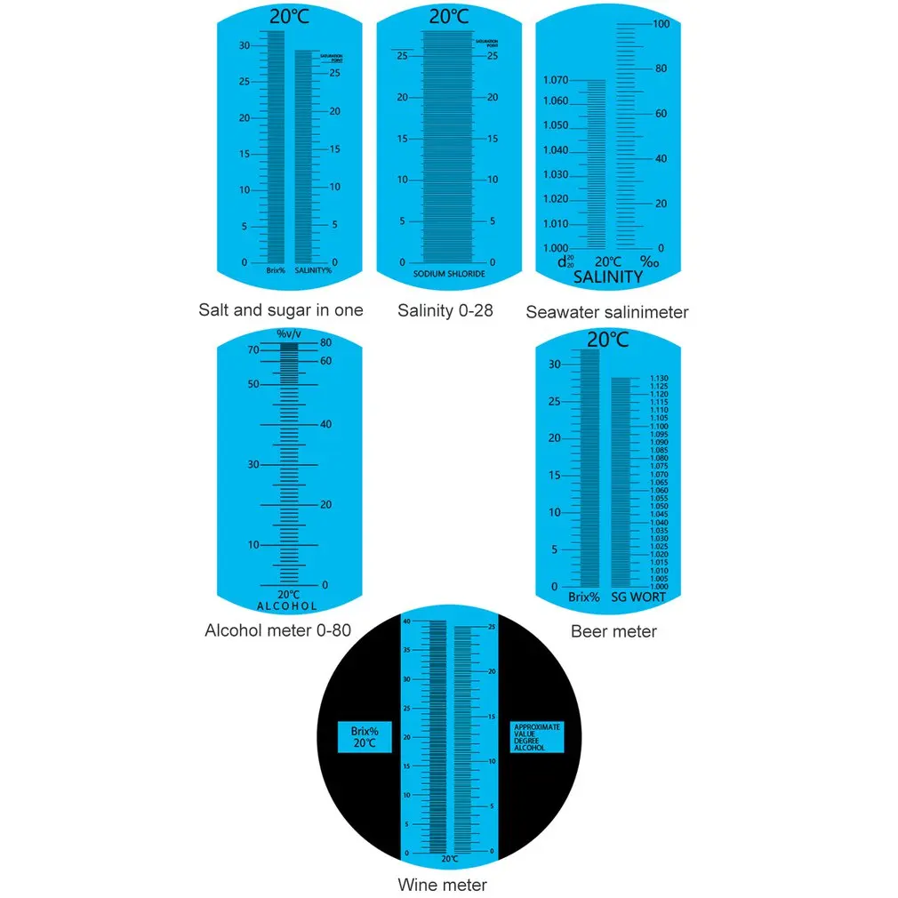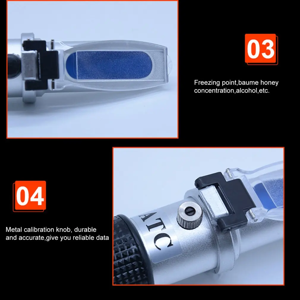1. Ручной рефрактометр, может использоваться для проверки сахара, солености, фруктовой сладости, температуры замораживания, концентрации бауме меда, алкоголя и т. Д.