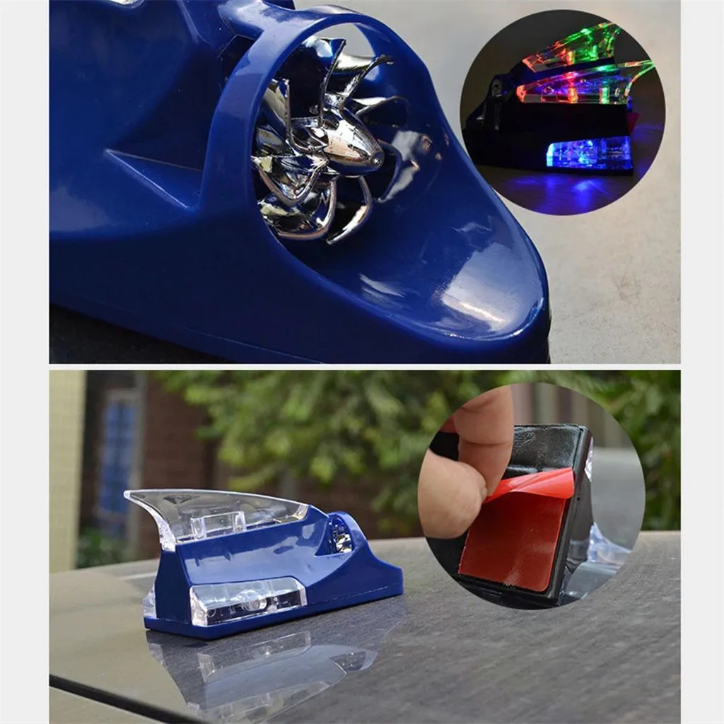 2. Когда транспортное средство движется, передние лопасти вентилятора будут вращаться на ветре, управляя внутренней металлической катушкой для генерирования электричества, цвет светодиодный светильник включается, без привода батареи, И ночью будет еще круче!