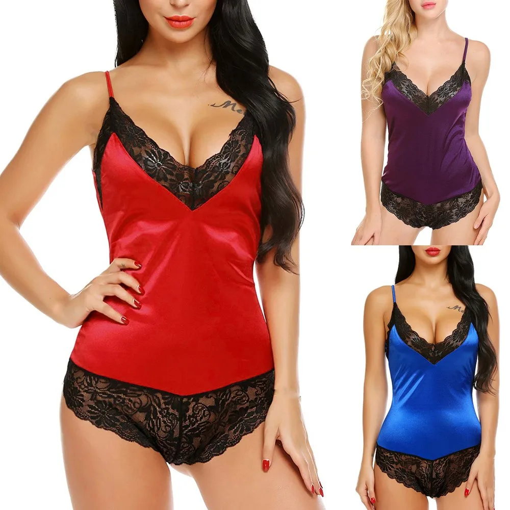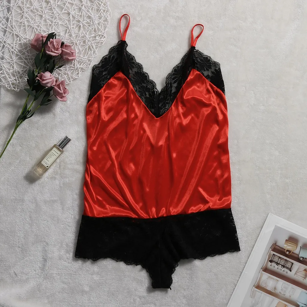 Новое Женское атласное нижнее белье, боди с v-образным вырезом, кружевной Короткий комбинезон, бесшовный полиэстер размера плюс XXXL, мягкое цельное боди Encaje
