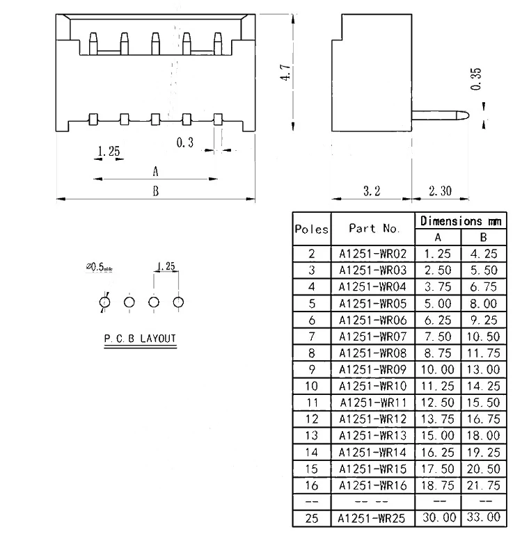 1,25 мм шаг расстояние 10 P 11 P 12 P 13 P 14 P 15 P 16 P пластиковый прямоугольный вывод pcb коробка гнездо макет разъем