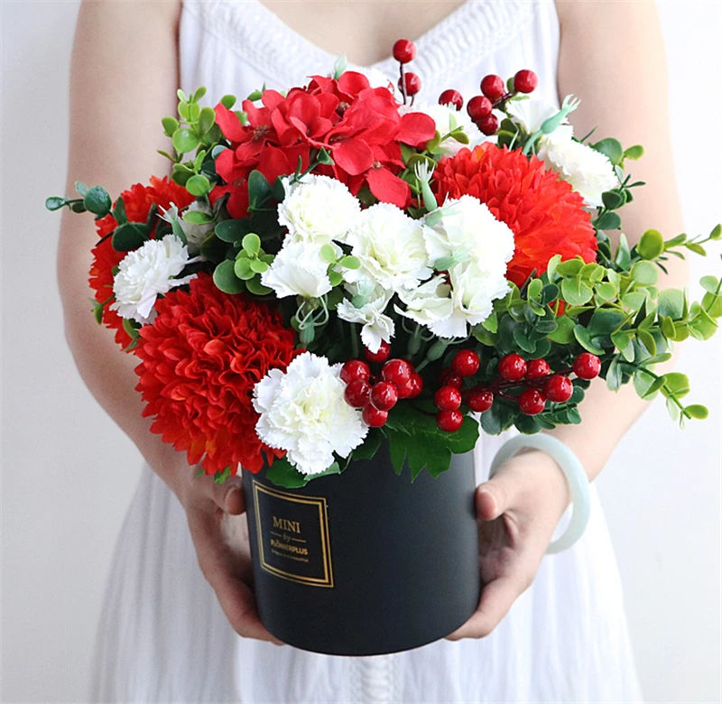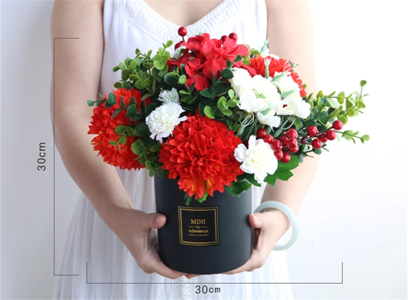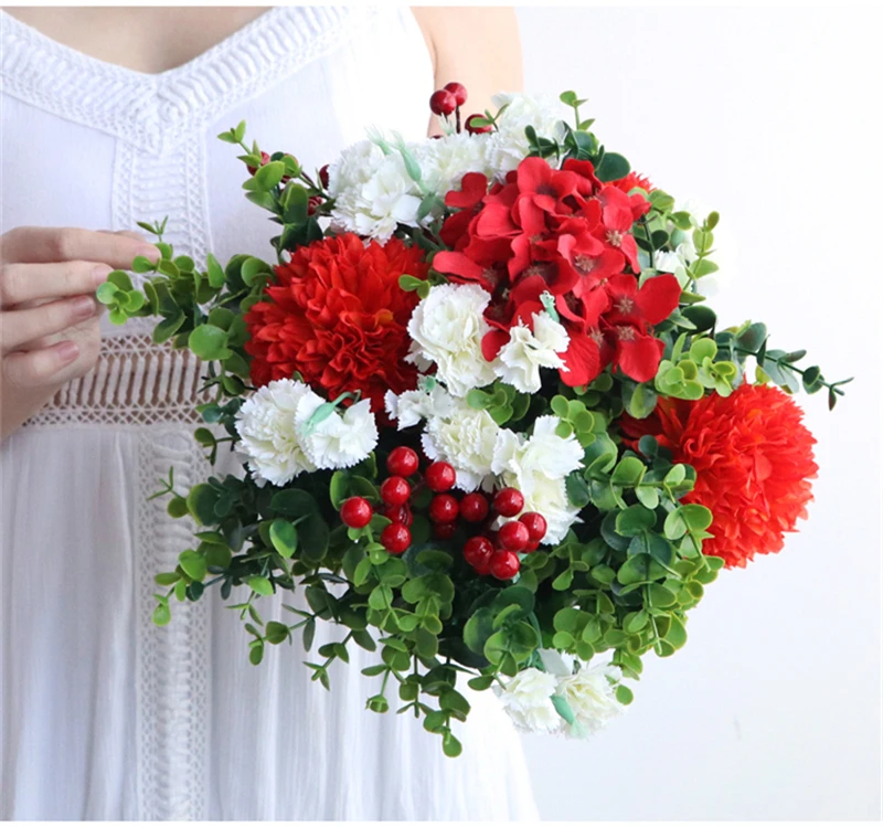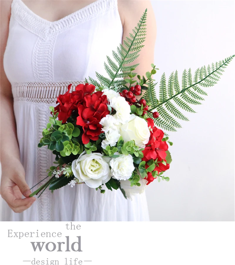 Красная Свадебная декорация Роза гортензия букет имитация шелковые пластиковые поддельные цветы набор украшение стола Цветочная композиция ваза