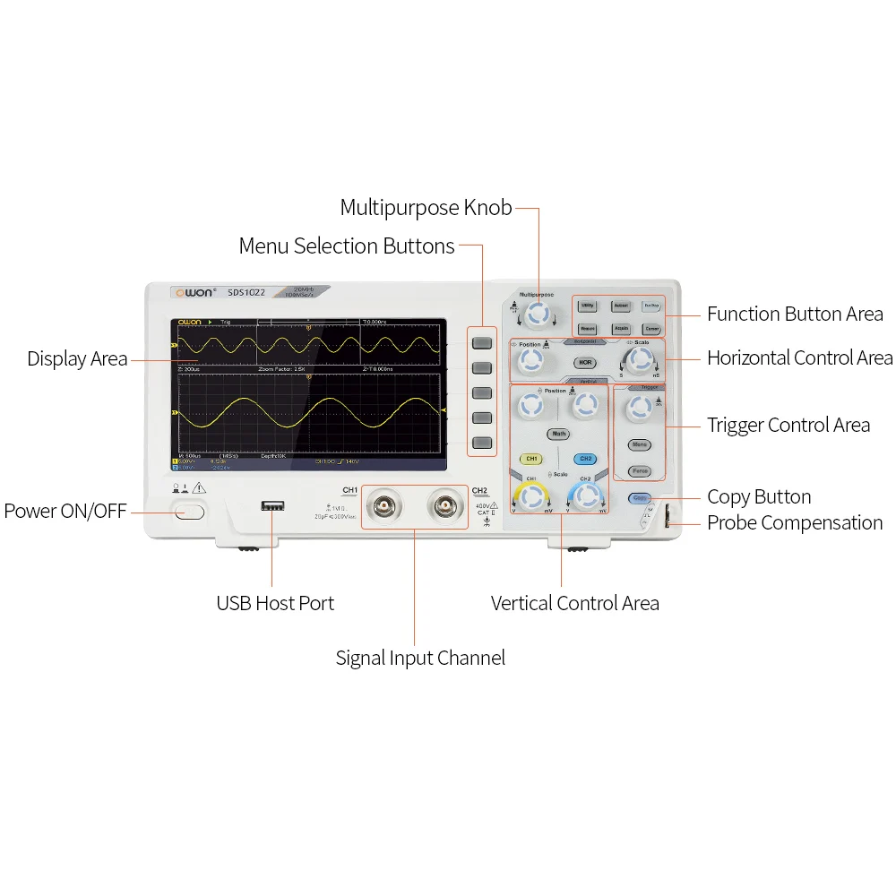 Вход муфта DC, AC и GND Вертикальное разрешение (A/D) 8 бит (2 канала одновременно) Вертикальной чувствительностью 5 мВ/дел-5V/div (при вводе) Триггер Тип Край, видео Режим запуска Авто, нормальный и одиночный Уровень триггера ± 5 делений от центра экрана Частота линии/поля (видео) Стандарт NTSC, PAL и SECAM Измерение курсора △V и △T между курсоры Автоматическое измерение Vpp, Vavg, RMS, частота, период, Vmax, Vmin, Vtop, Vbase, ширина, Overshoot,
