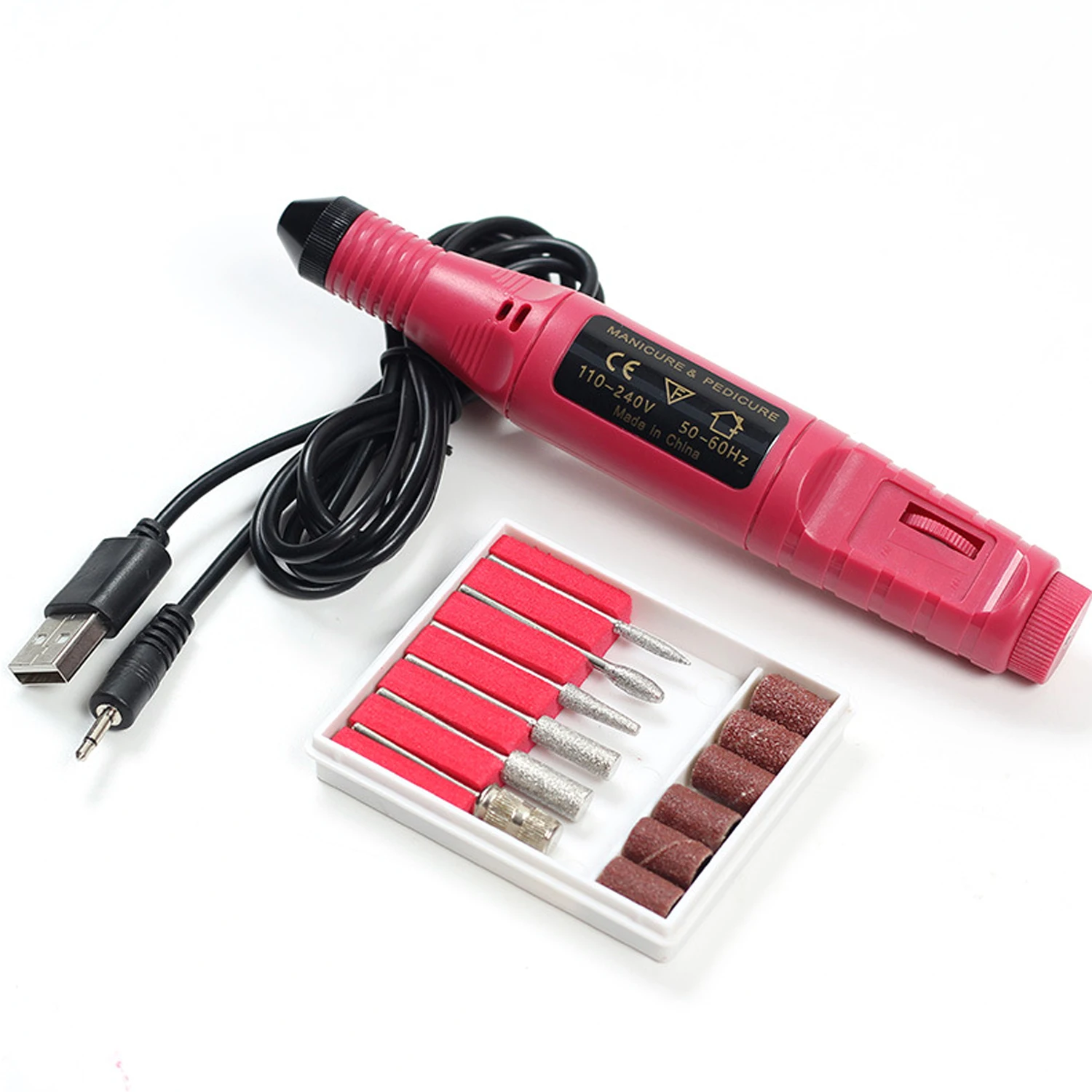 1 Набор мини USB электрическая дрель для ногтей с 6 шт. Сменные сверла для профессионального салона домашнего использования маникюрные инструменты для ногтей