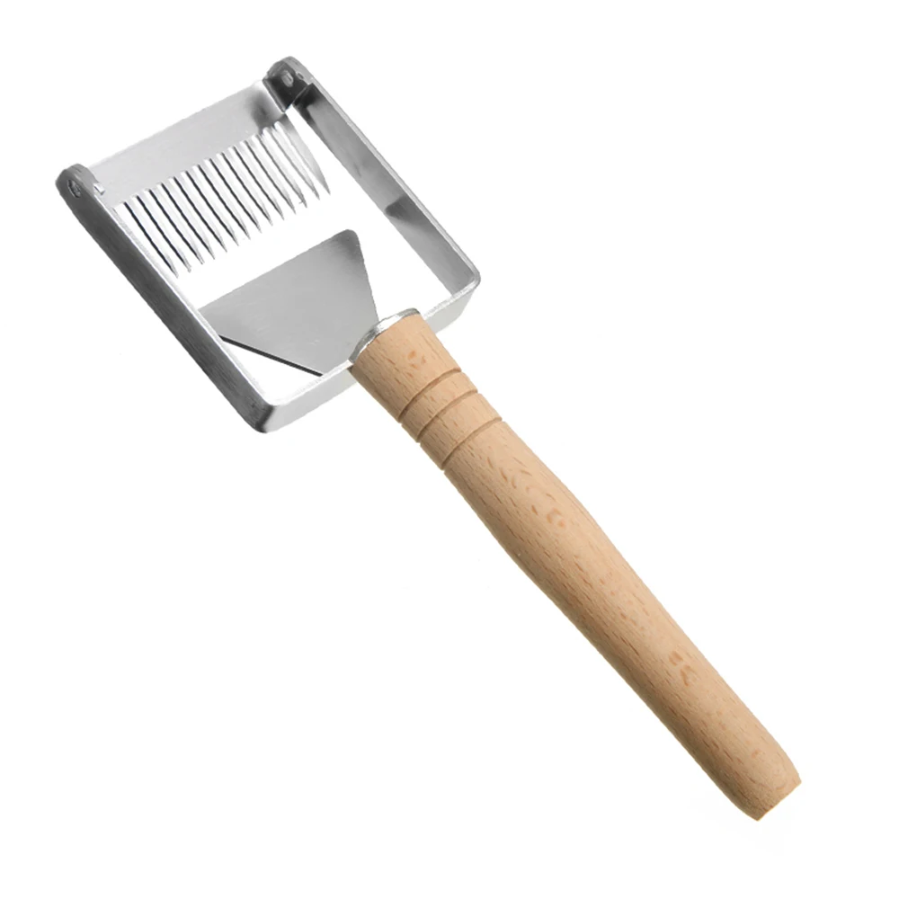 Медовый скраппер, изготовленный из нержавеющих жесткостей и гладкой деревянной ручки.