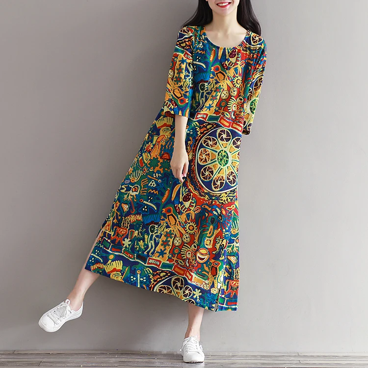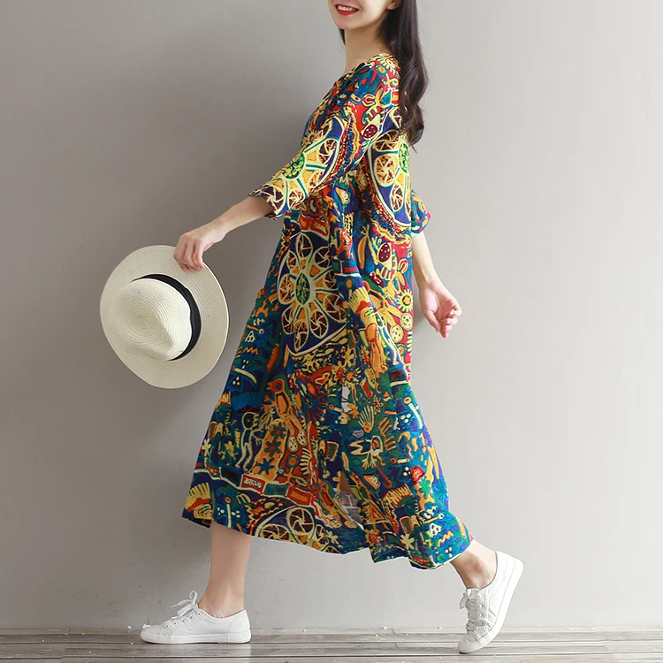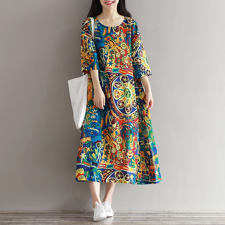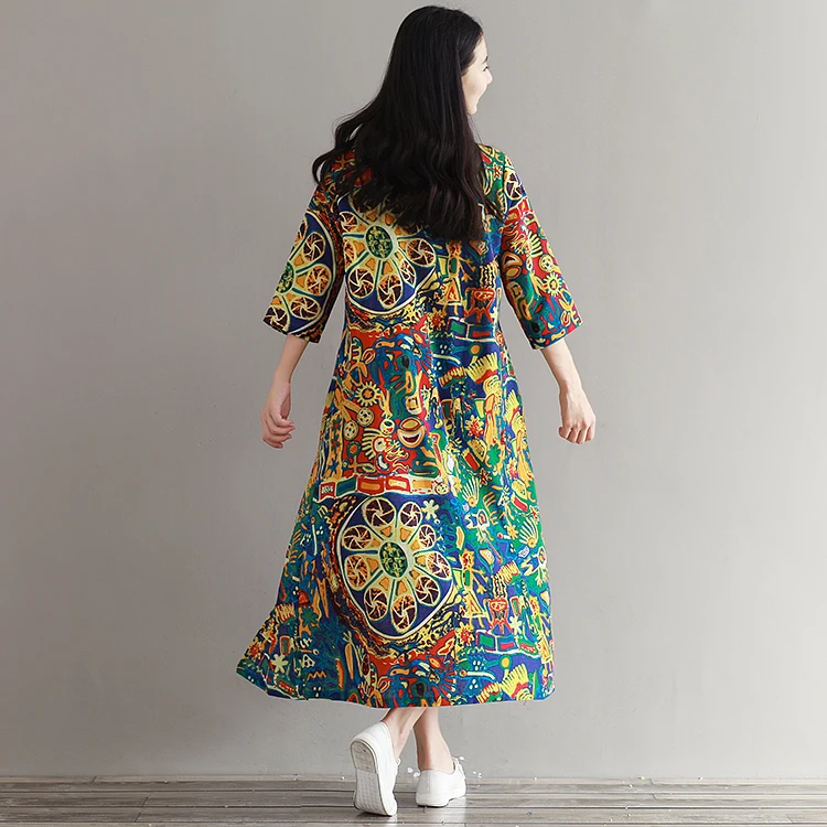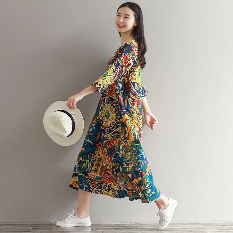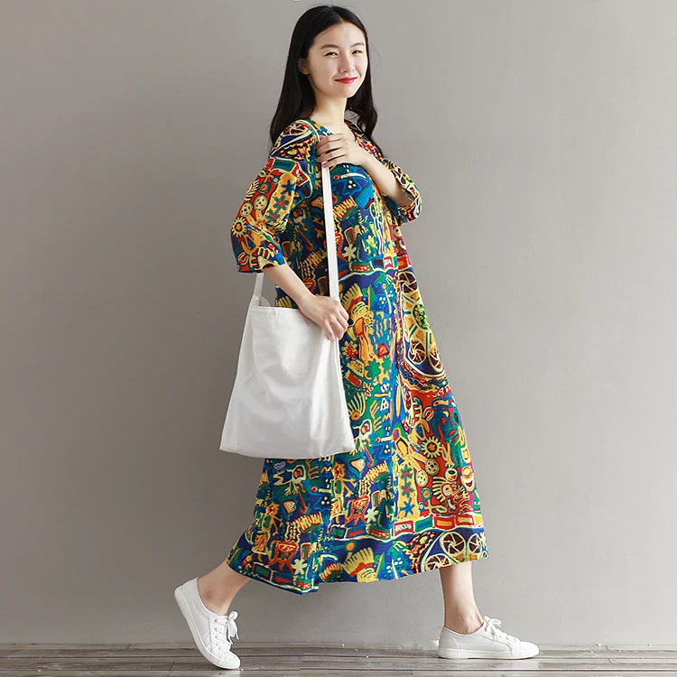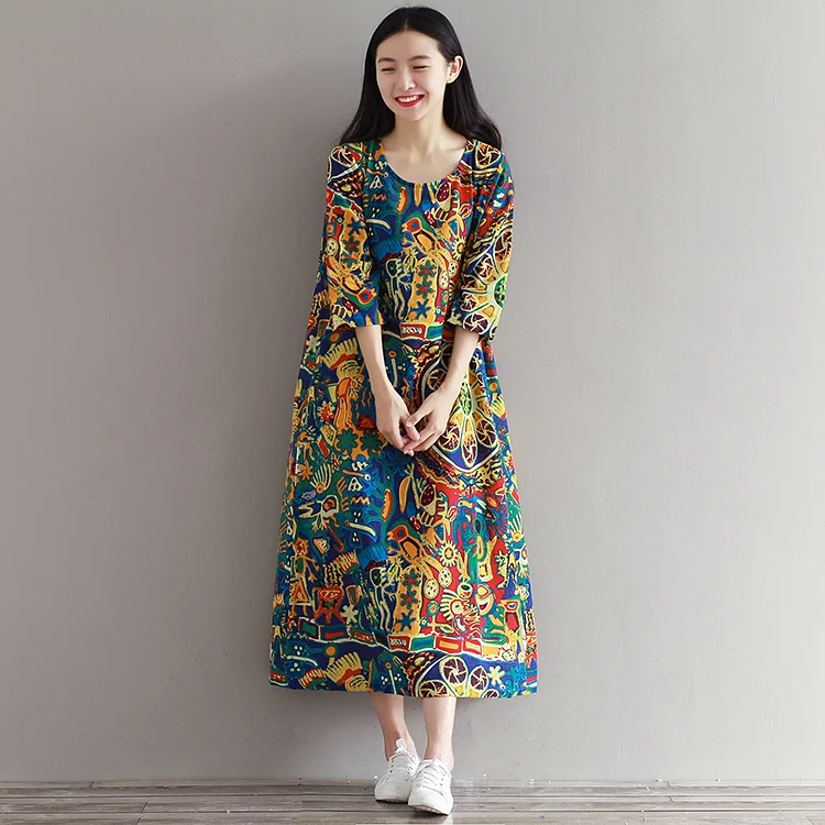 Description2020 весеннее женское винтажное длинное платье с круглым вырезом и принтом Vestidos De Festa, хлопковое льняное платье с коротким рукавом, платье Mori на девочку AF955