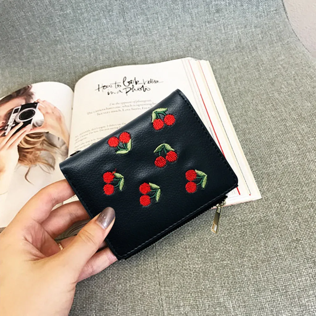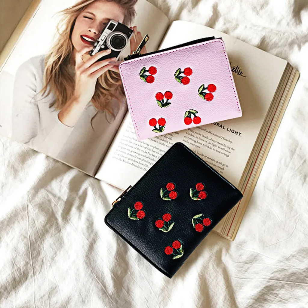 Сумка для женщин, сумки, модные сумки с вышивкой вишни, сумки-бумажники для девочек, кожаные сумки на молнии и застежке, клатч, повседневная сумка